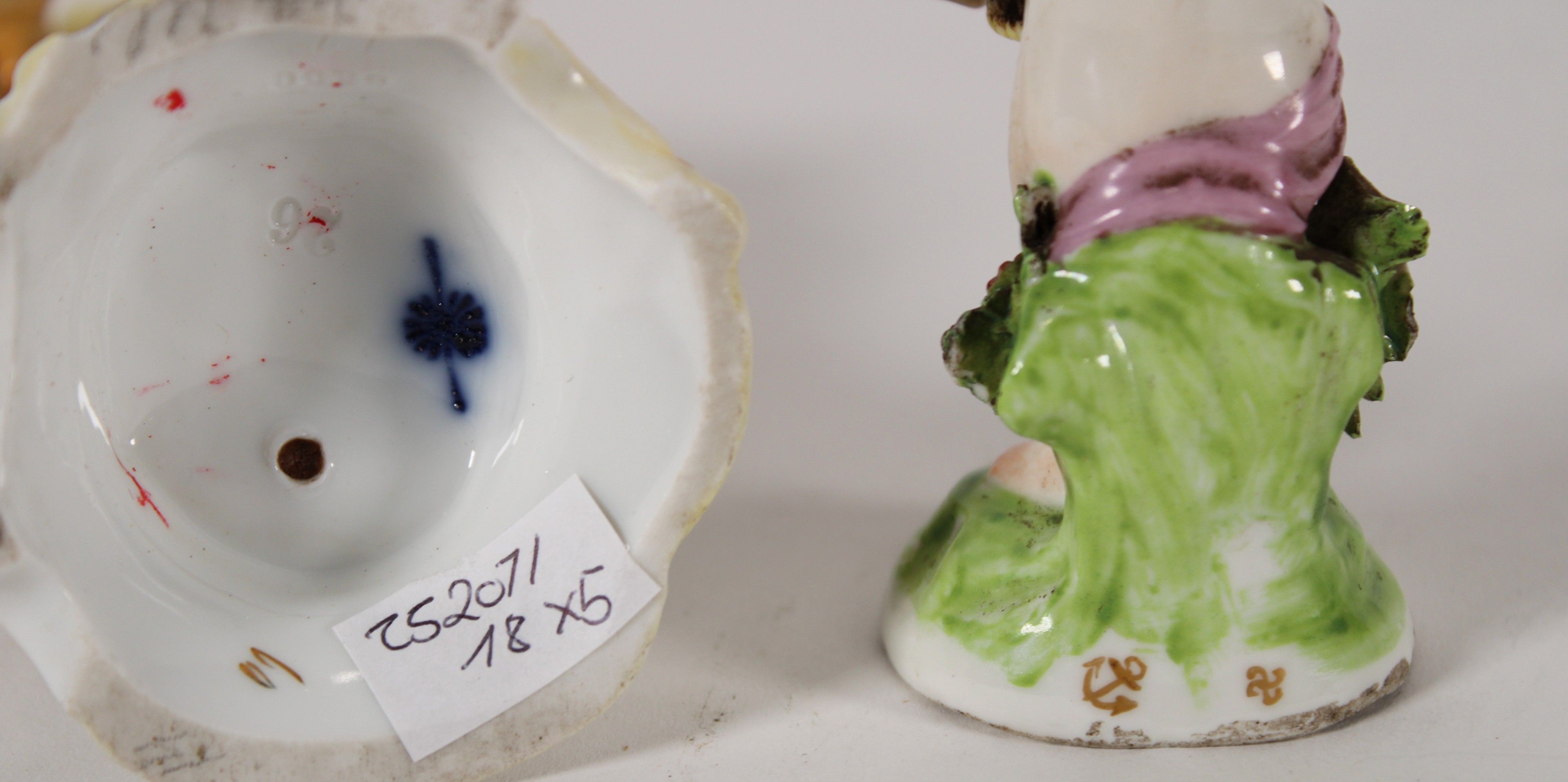 - A putto holding a basket of flowers. Gold anchor mark (small chips, notably to the wreath of flowers). Height : 10,5 cm