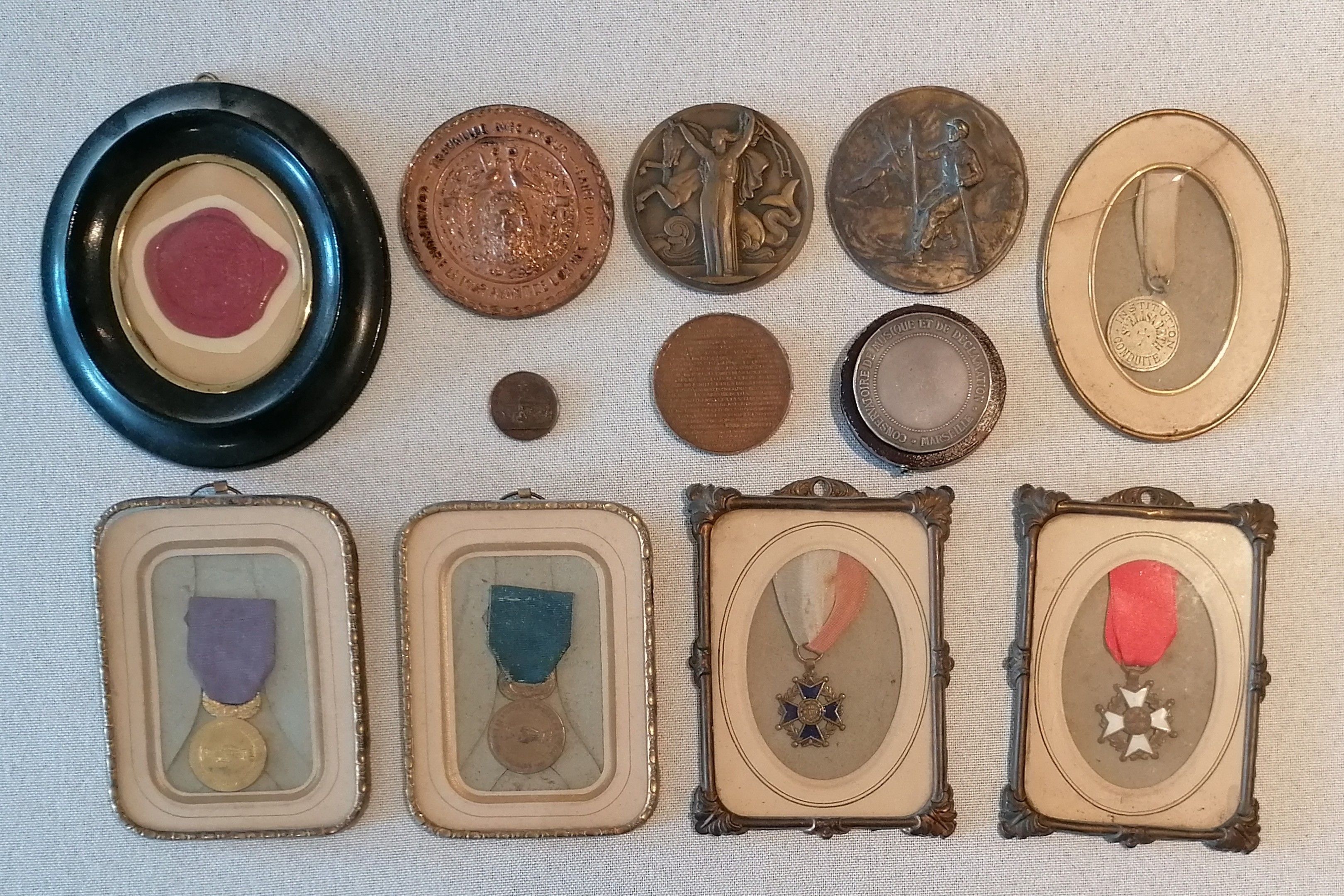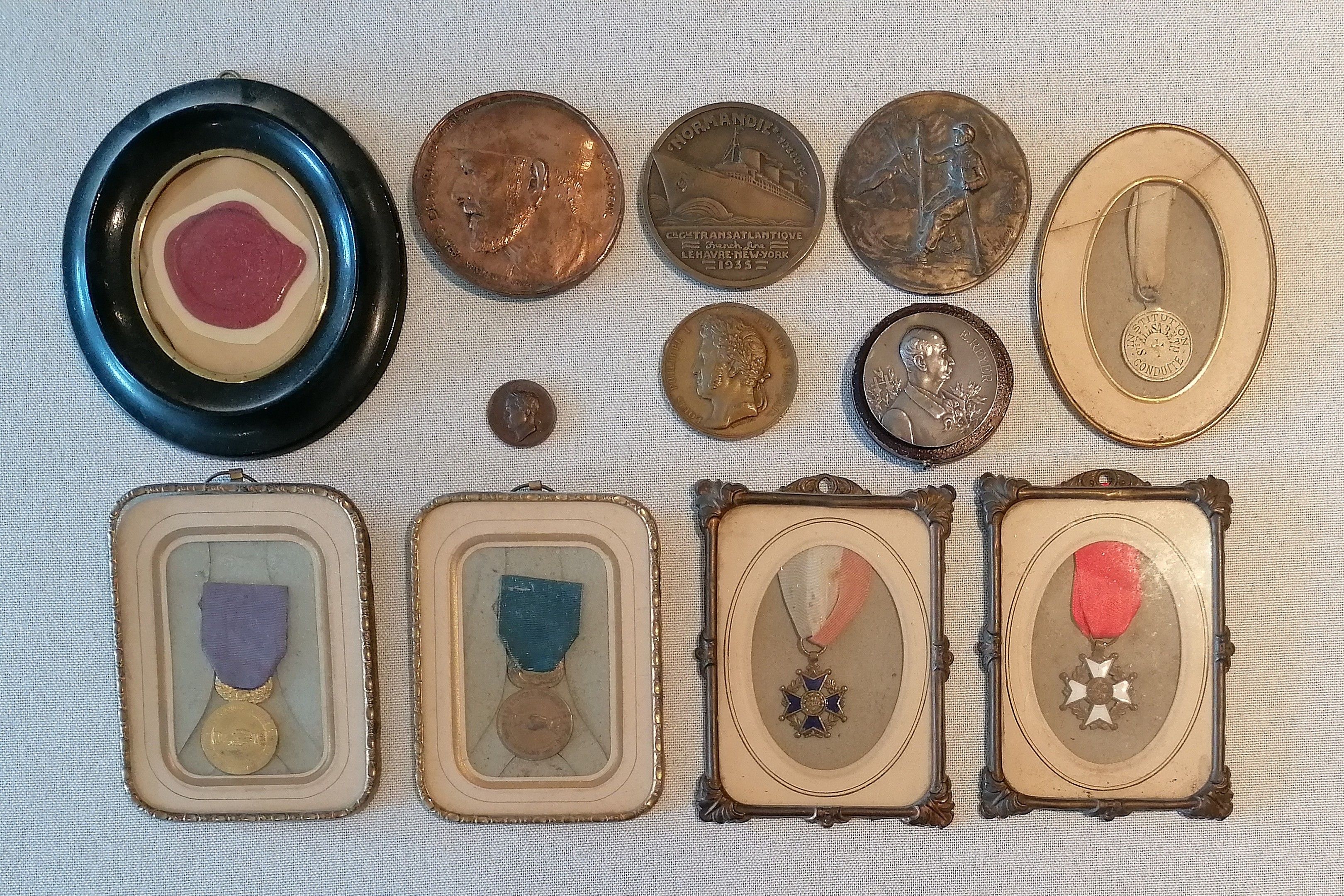 - A patinated bronze medal 'Napoléon empereur et roi, arrivé à Paris, 1840', after Caunois. Diameter: 2.4 cm.