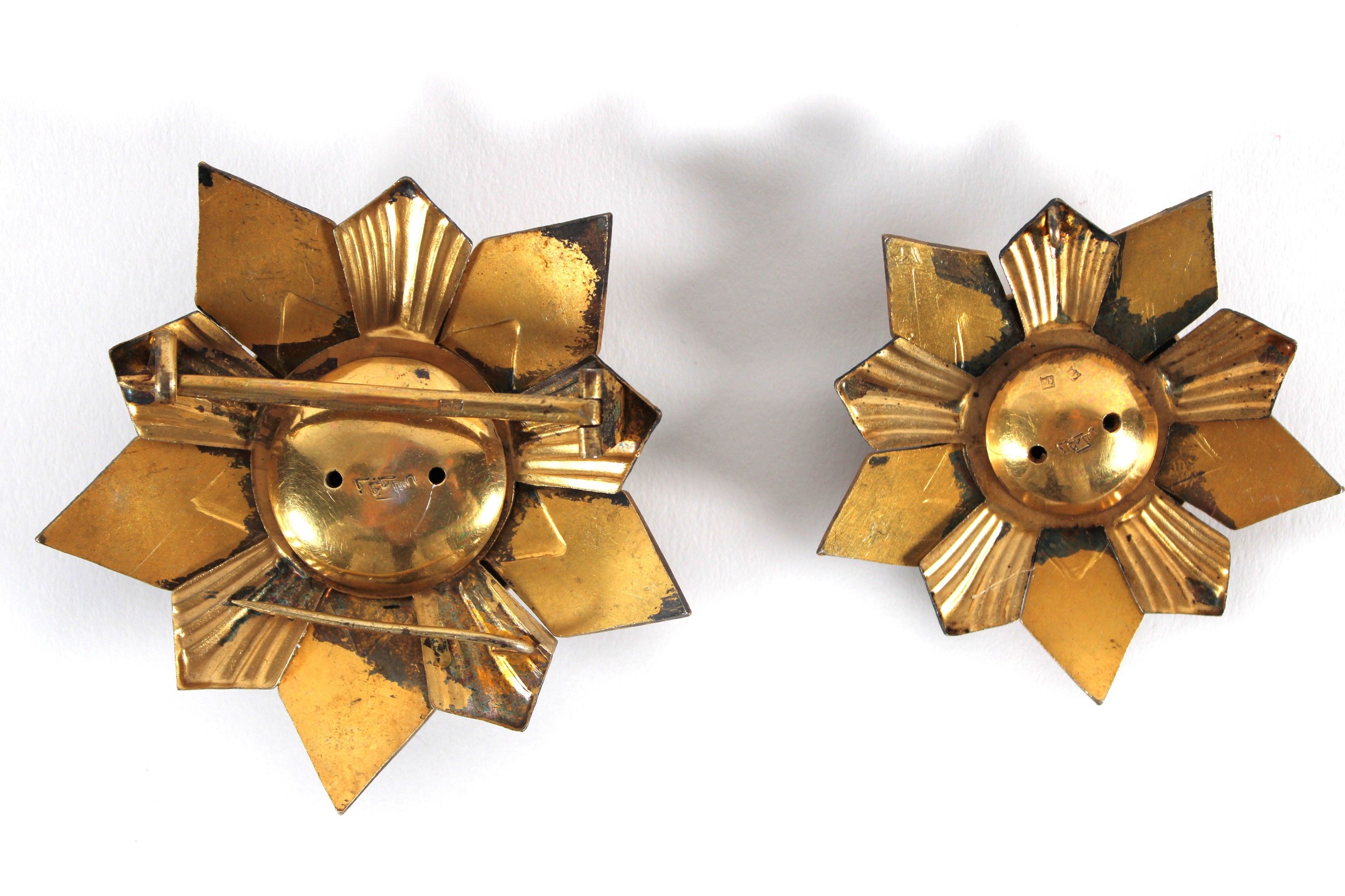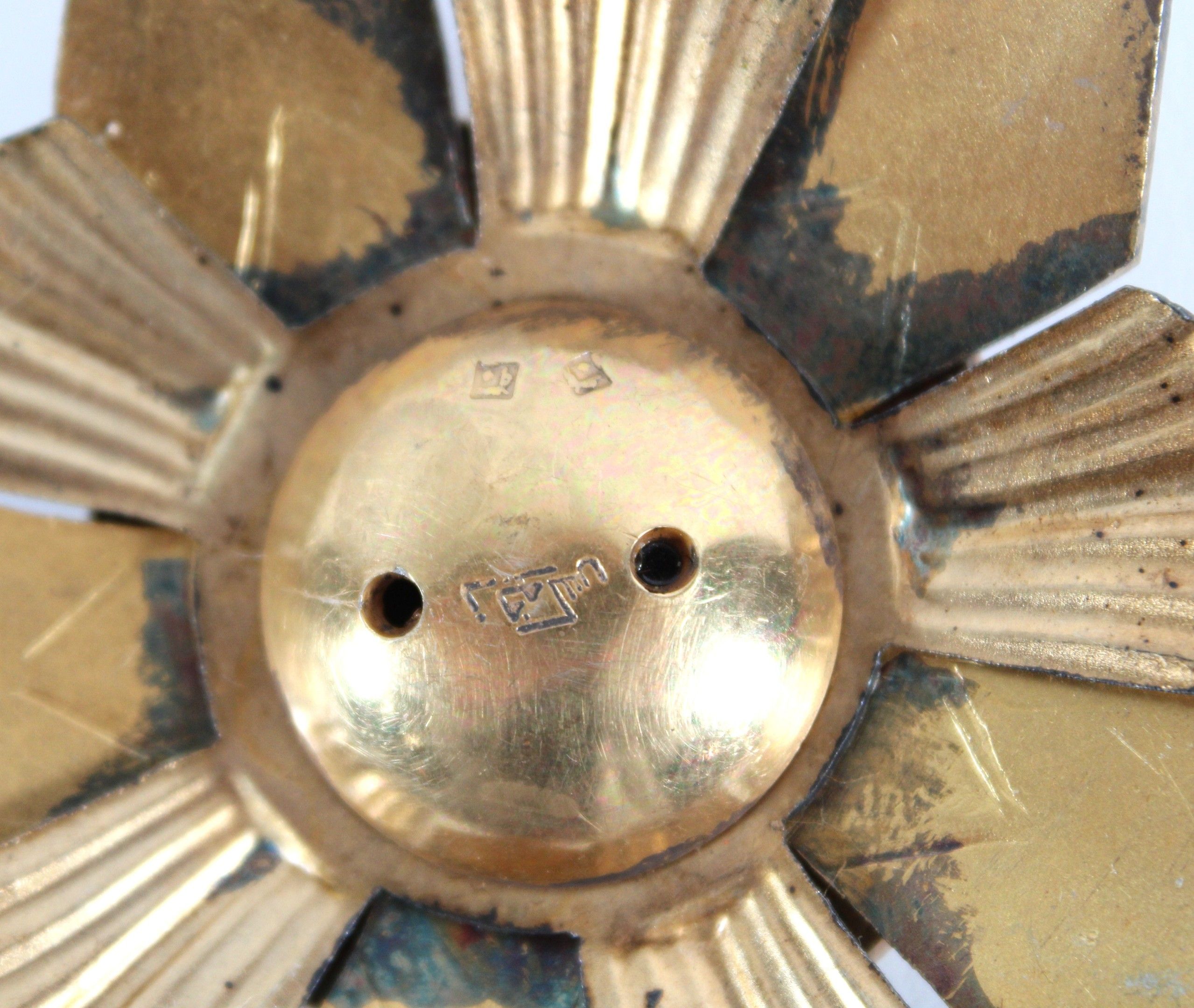 -The silver, vermeil and enamel jewel (the blue enamelled bélière surmounting the loosened star). Hallmarked reverse. Scarf.