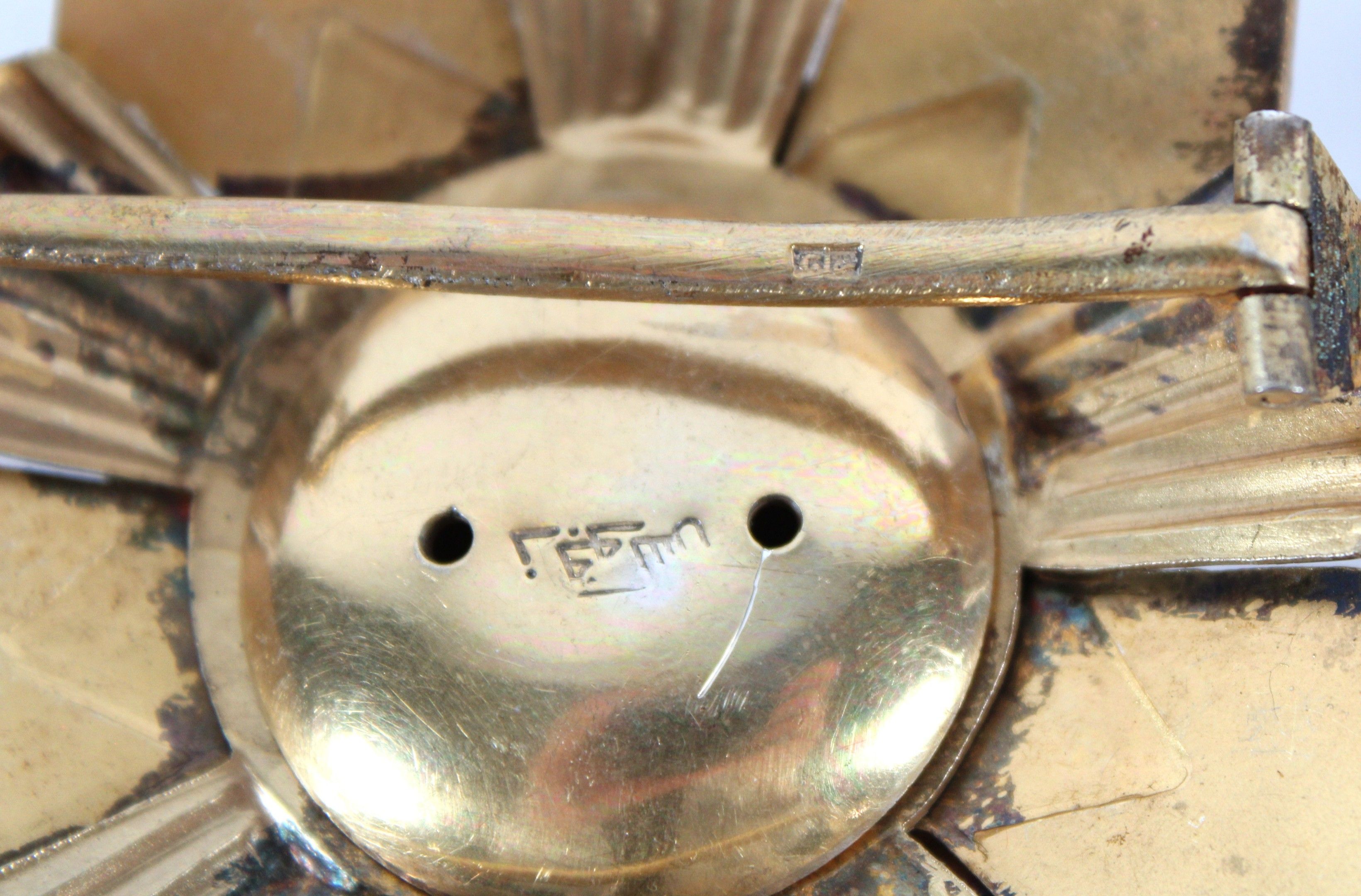 -The plate. Silver, vermeil and enamel. Hallmarked reverse with toggle clasp and hook.