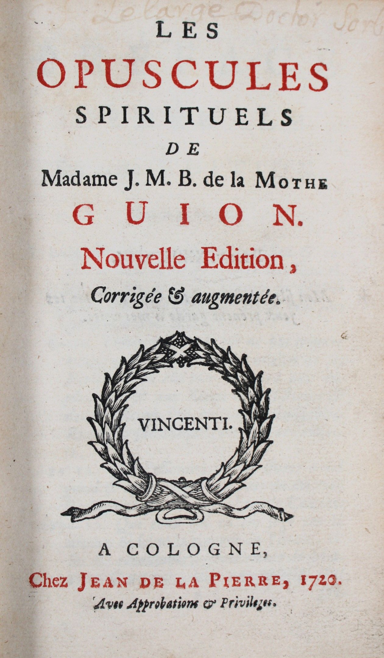 [ANCIEN] - LA MOTHE-GUYON (Madame de): Opuscules spirituels. New edition, augmented by her rare Traité des Torrents.