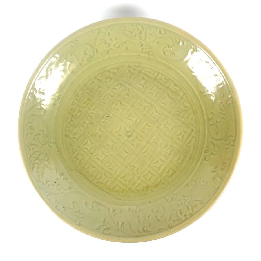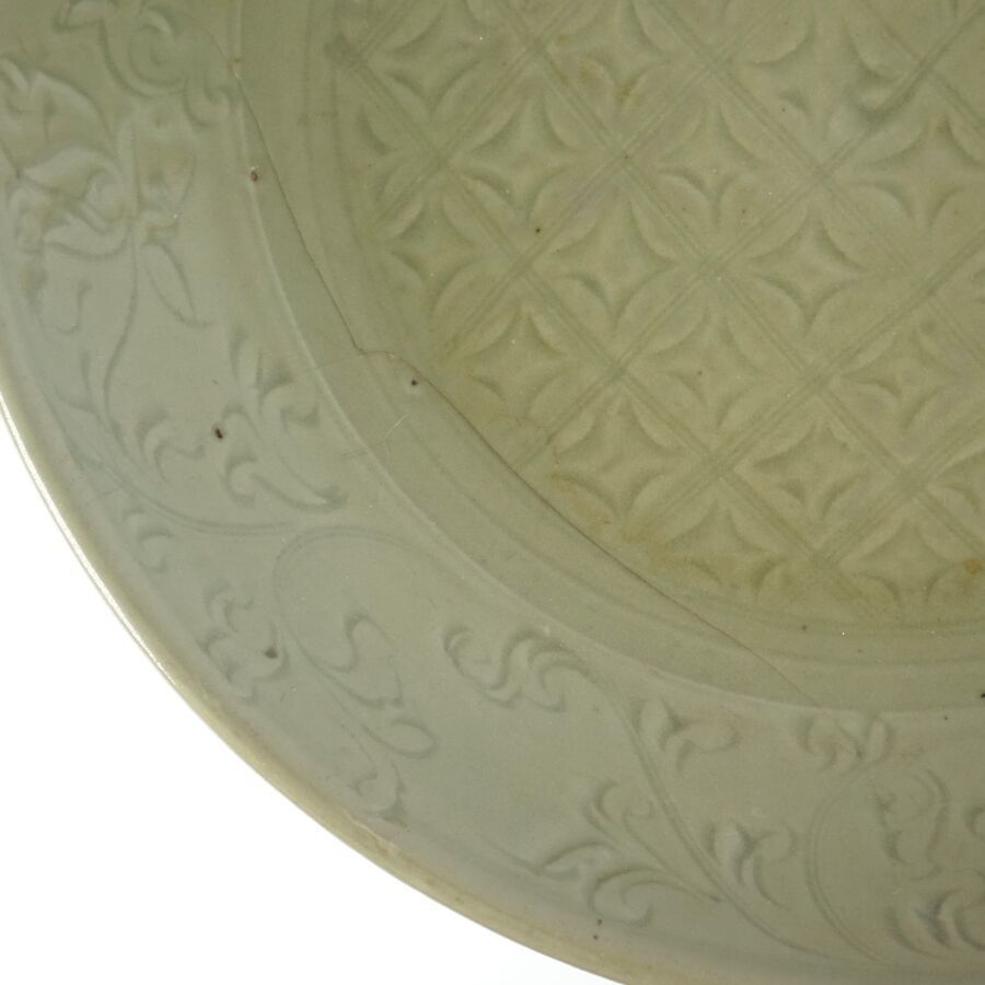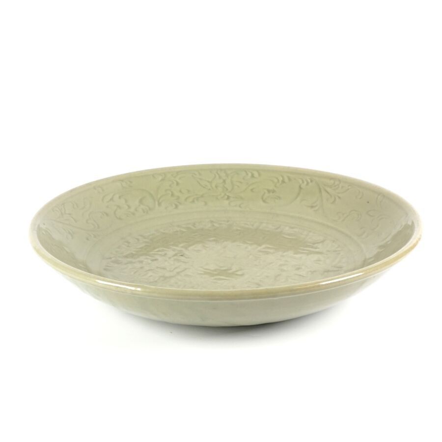 Celadon glazed stoneware bowl, China, 18th-19th century, H. 9 cm. D. 46 cm (restoration).