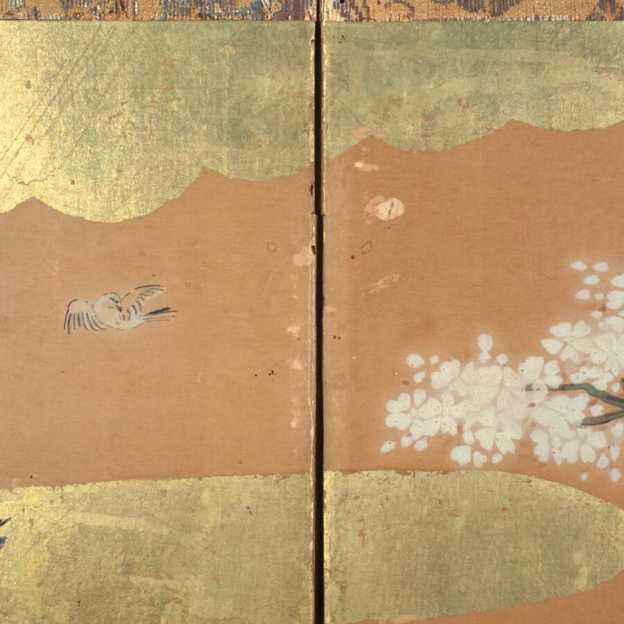 Six-leaf screen in ink, colour and gold highlights on paper …