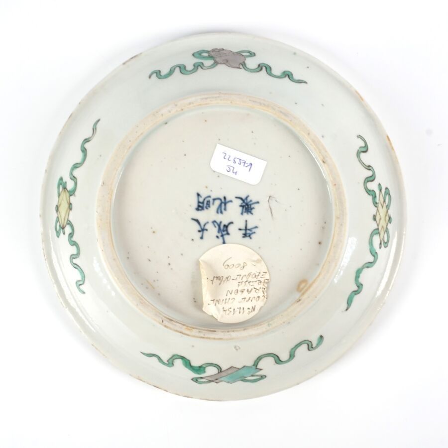 Soup bowl in porcelain and enamels of the green family, deco…