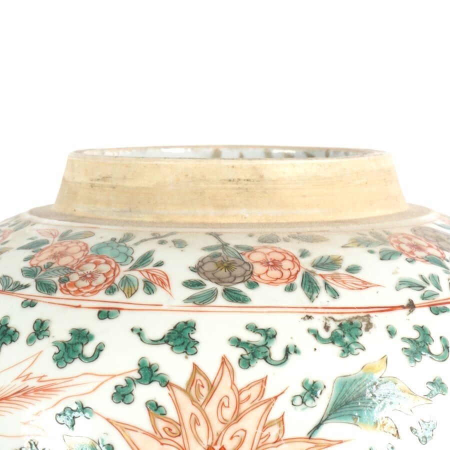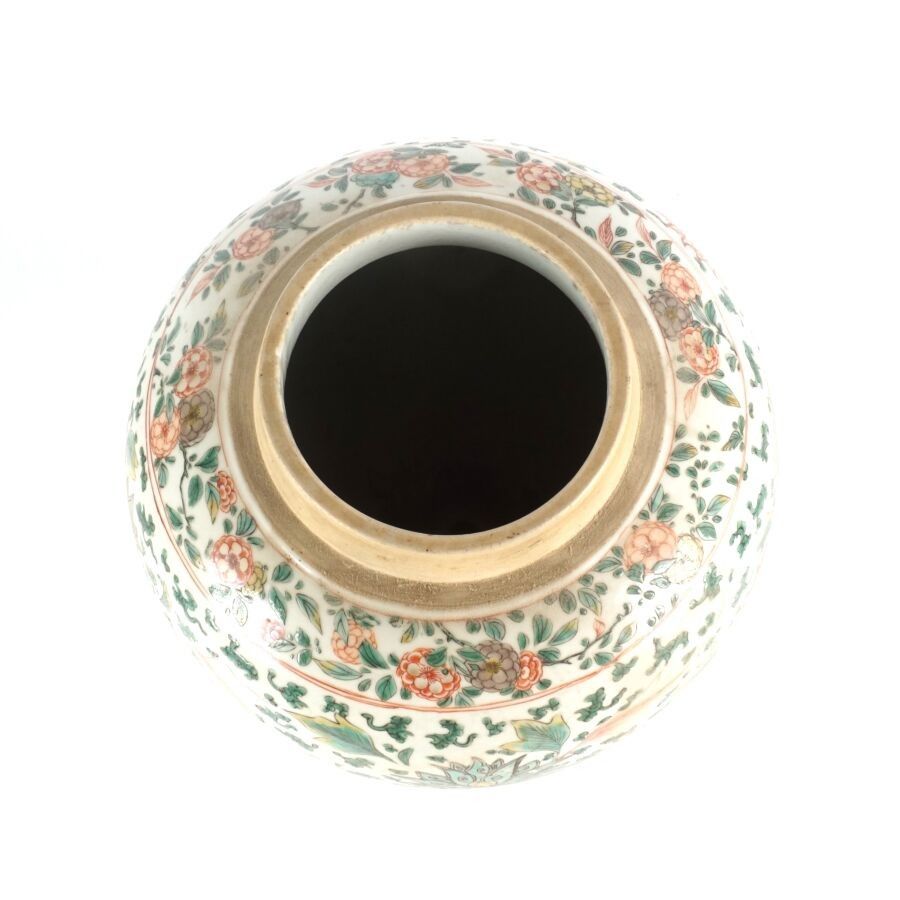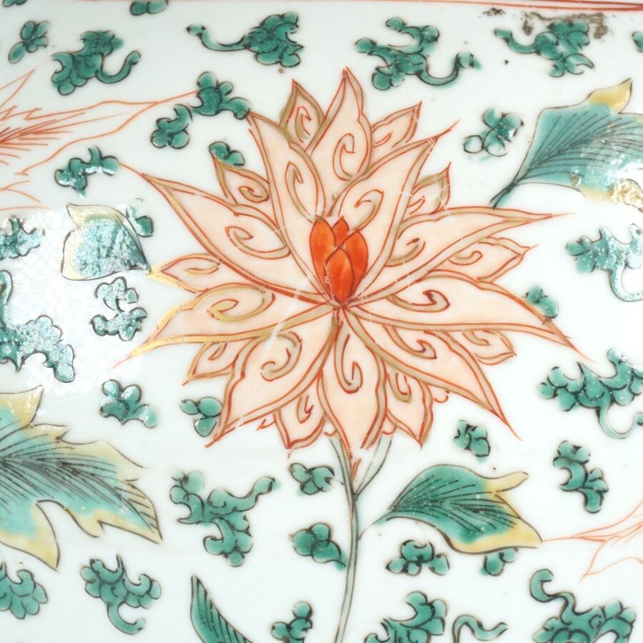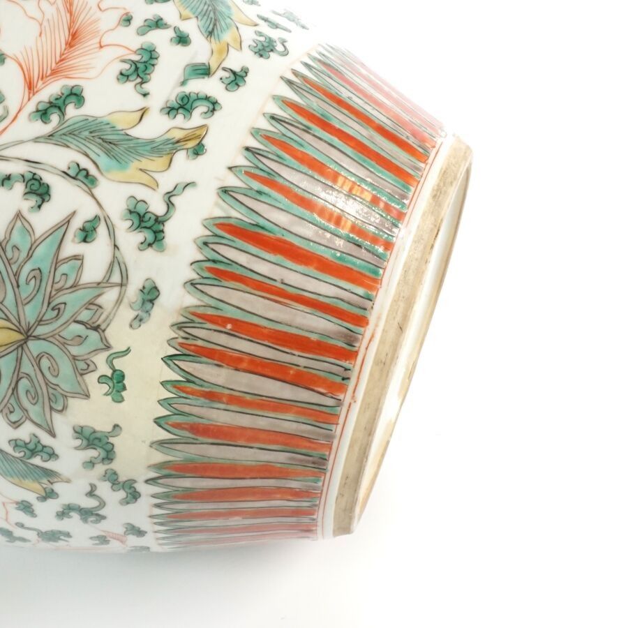 A green family style porcelain and enamel baluster vase, decorated with lotus flowers and foliage, China, late 19th century, H. 33.5 cm (lid missing).