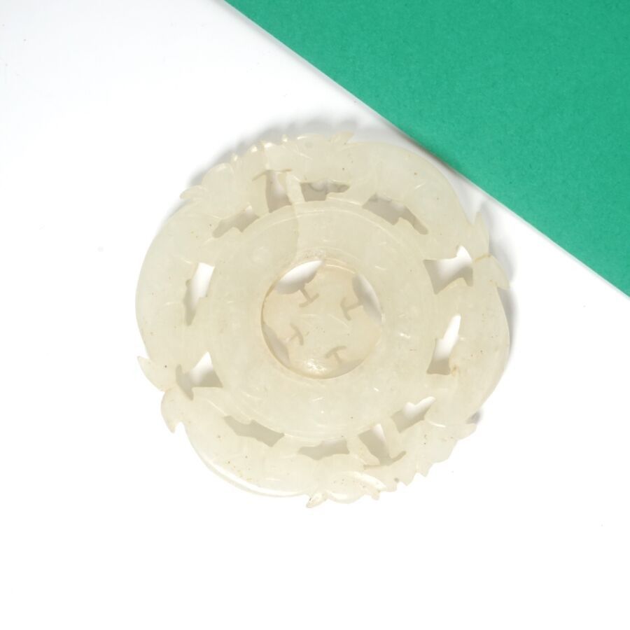 A white jade medallion, slightly celadon, in the form of a b…
