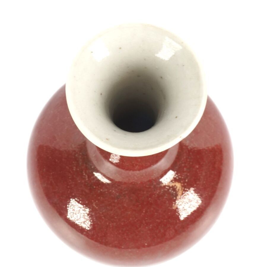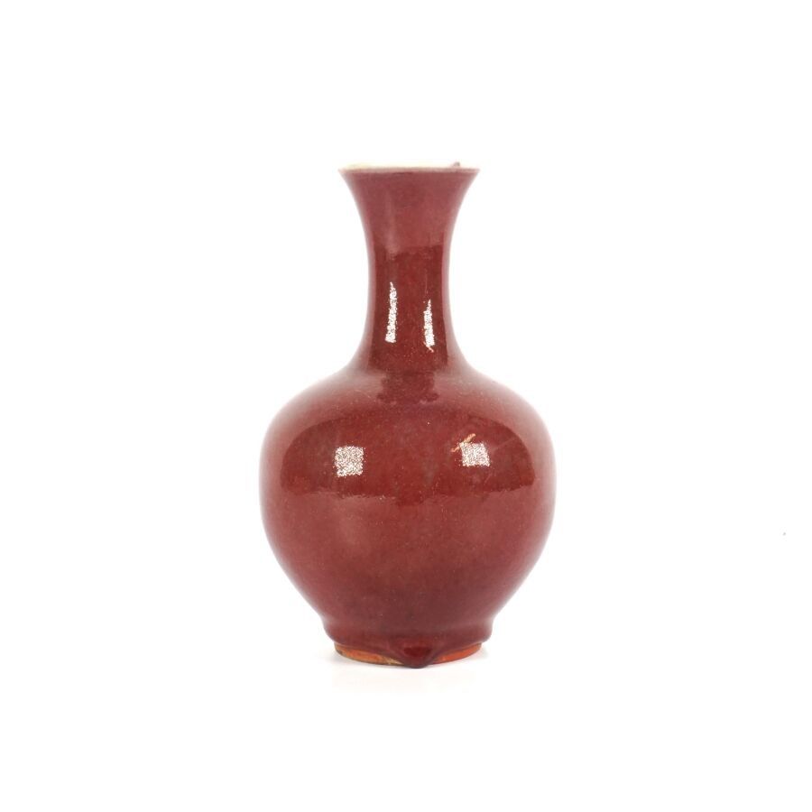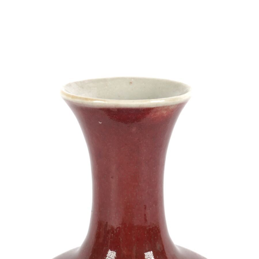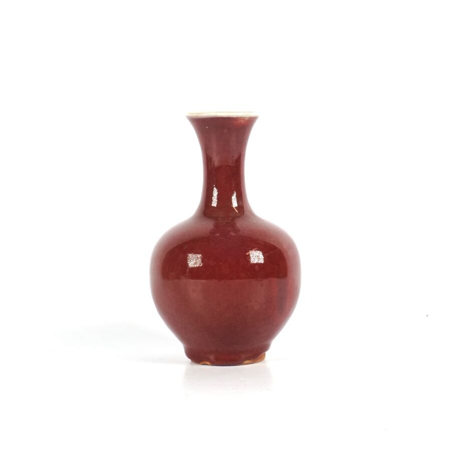An oxblood enamelled porcelain baluster vase, China, 19th century, H. 19 cm.