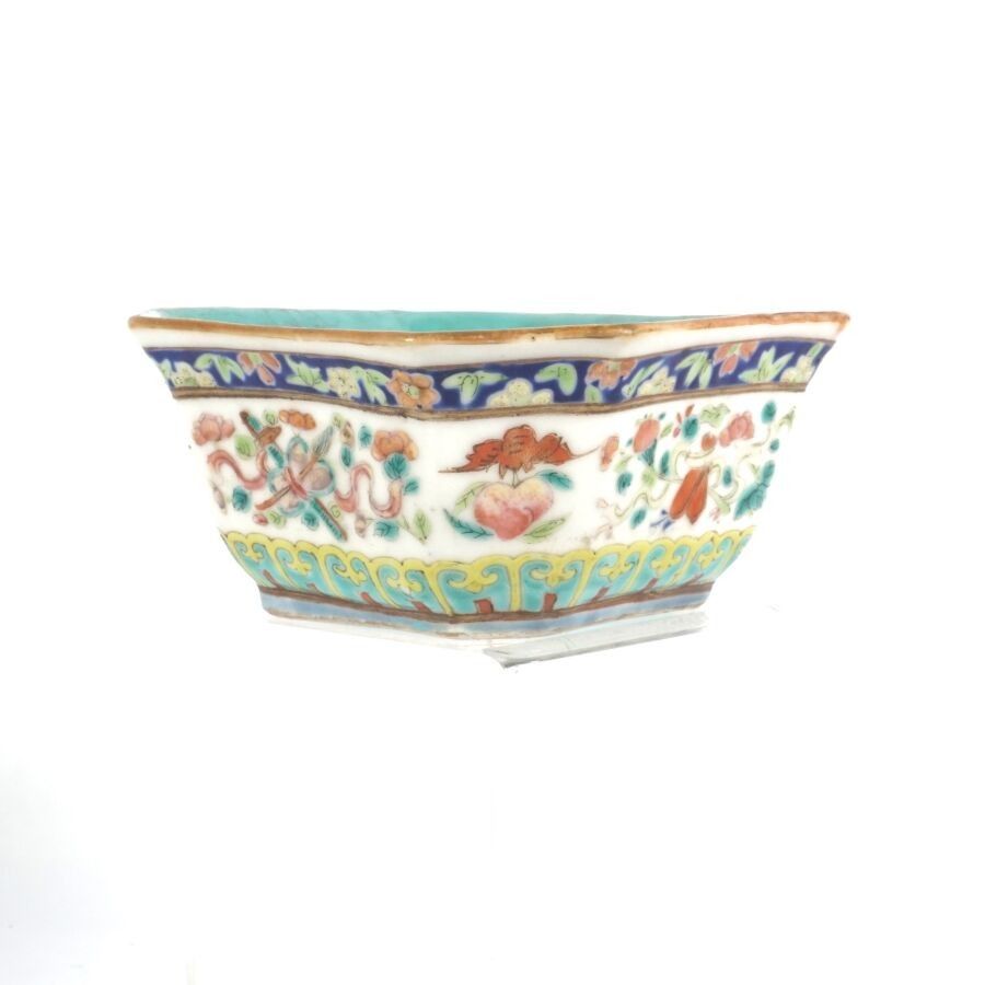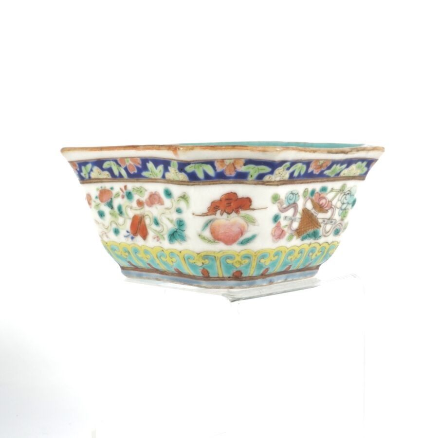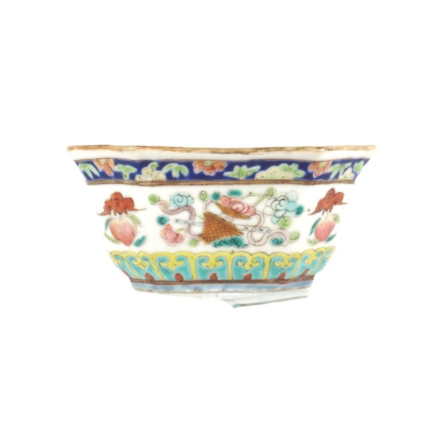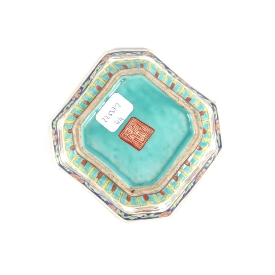 An octagonal porcelain and polychrome enamel dish decorated …