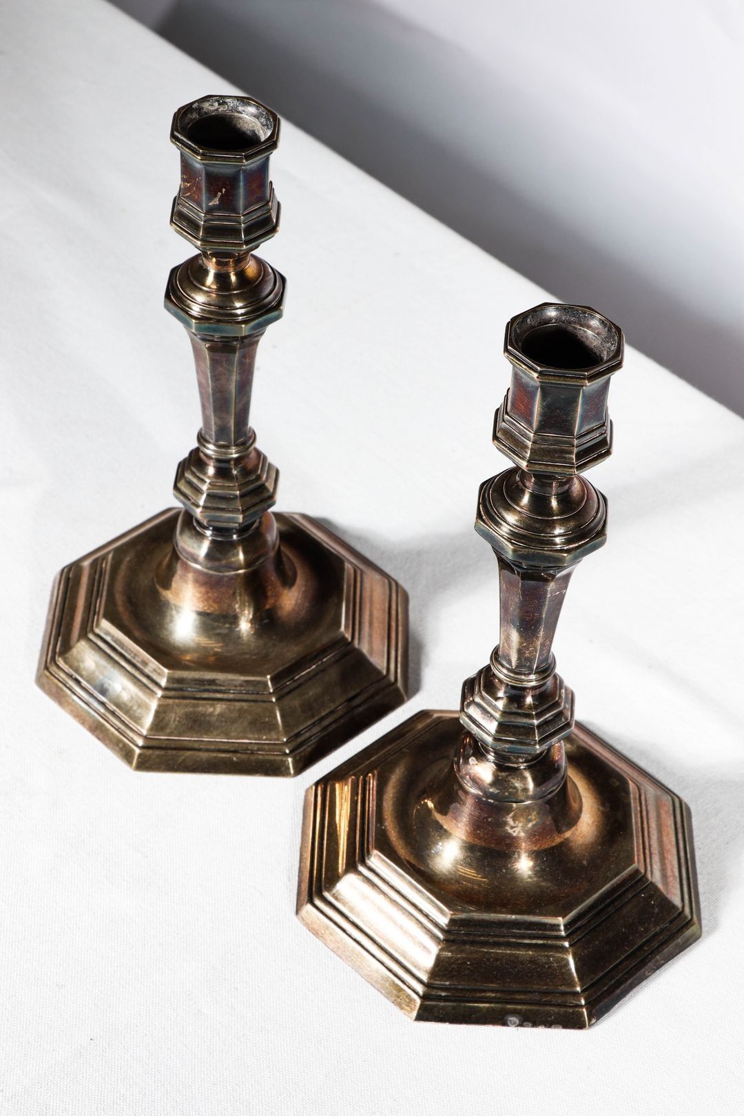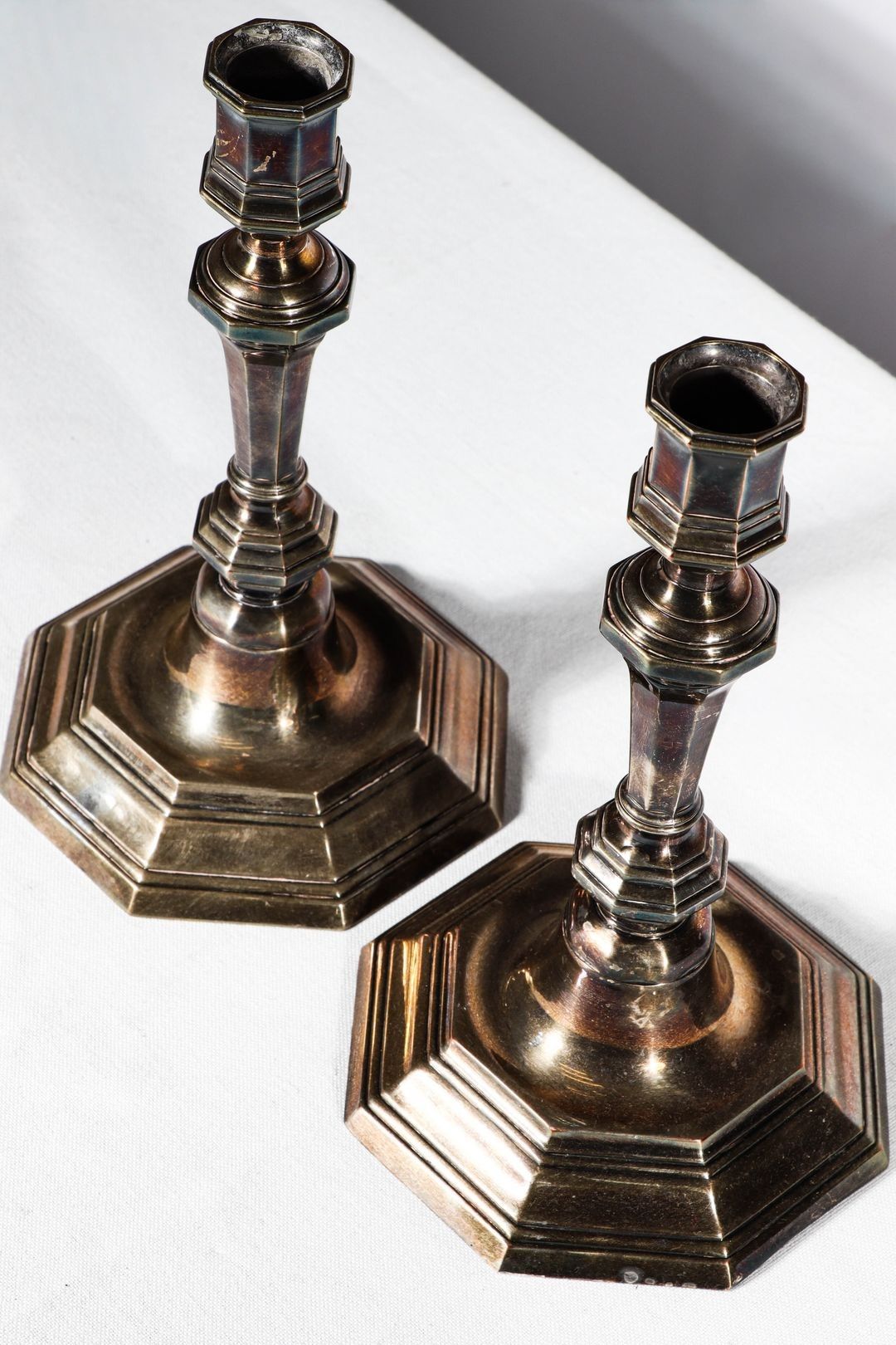 Pair of silver-plated metal torches