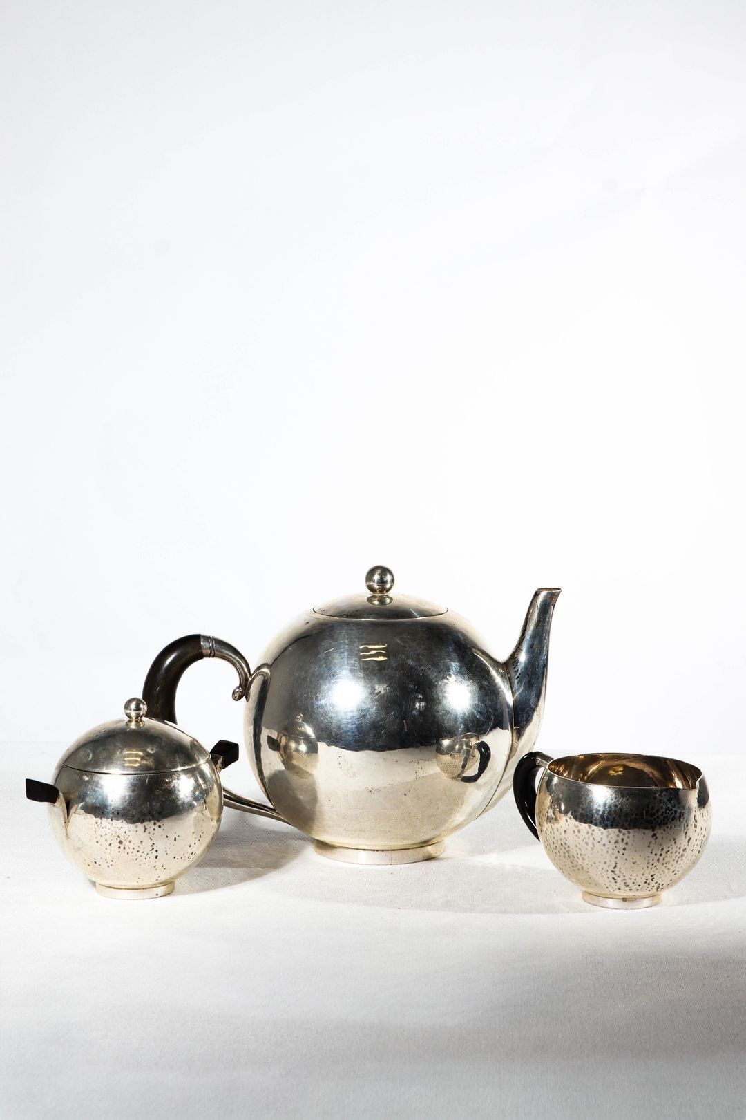 Premium GEORG JENSEN Silver tea service including a teapot, a sugar …