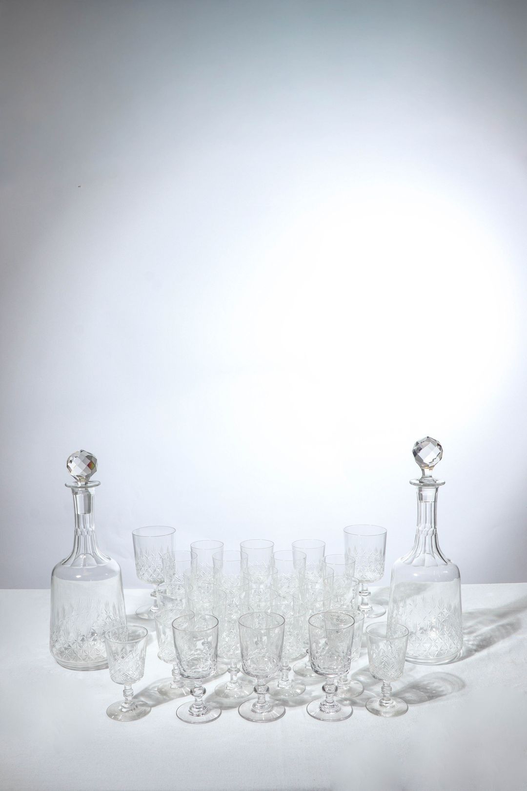- 19 large glasses (15 from one service and 4 from another). H: 14 cm.