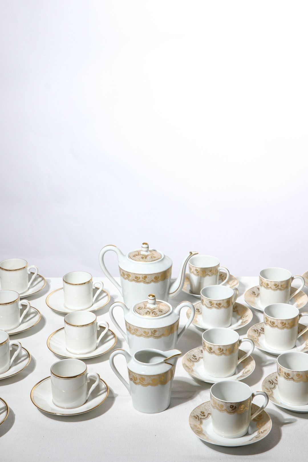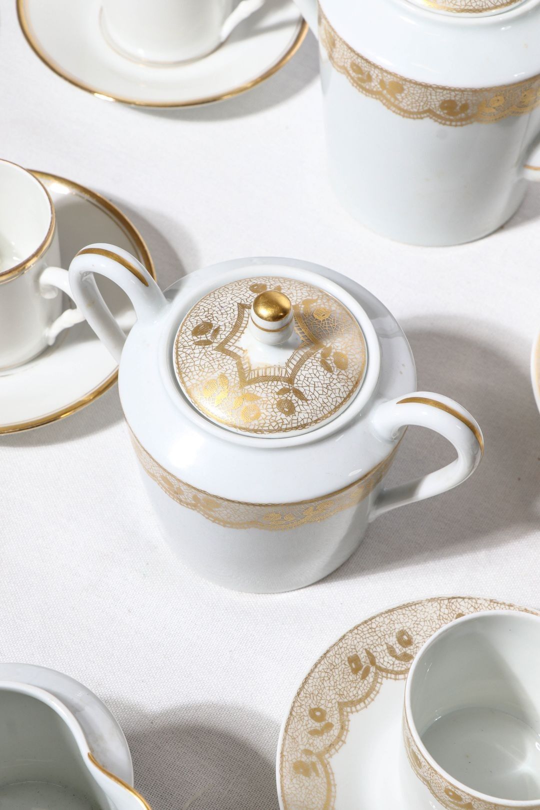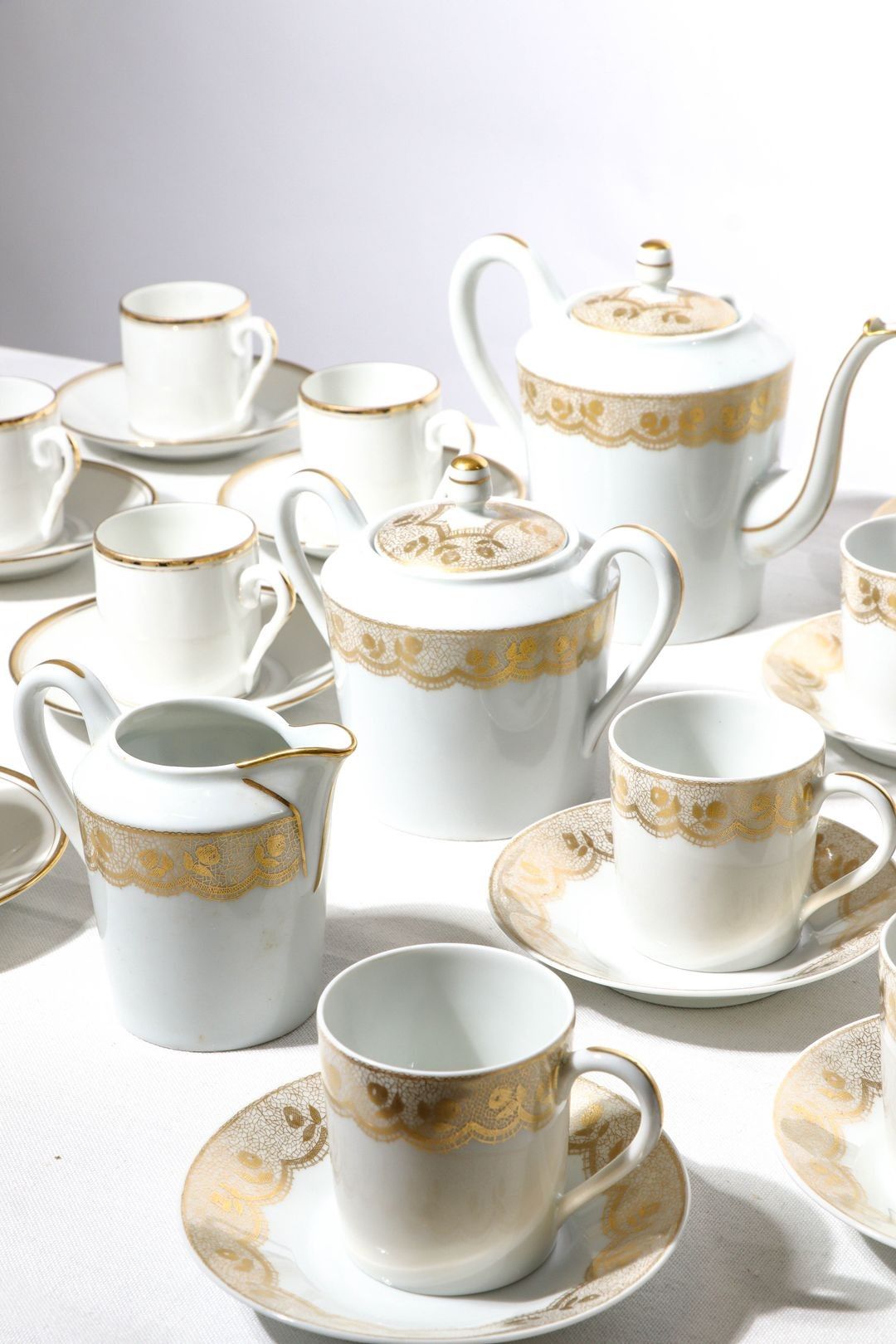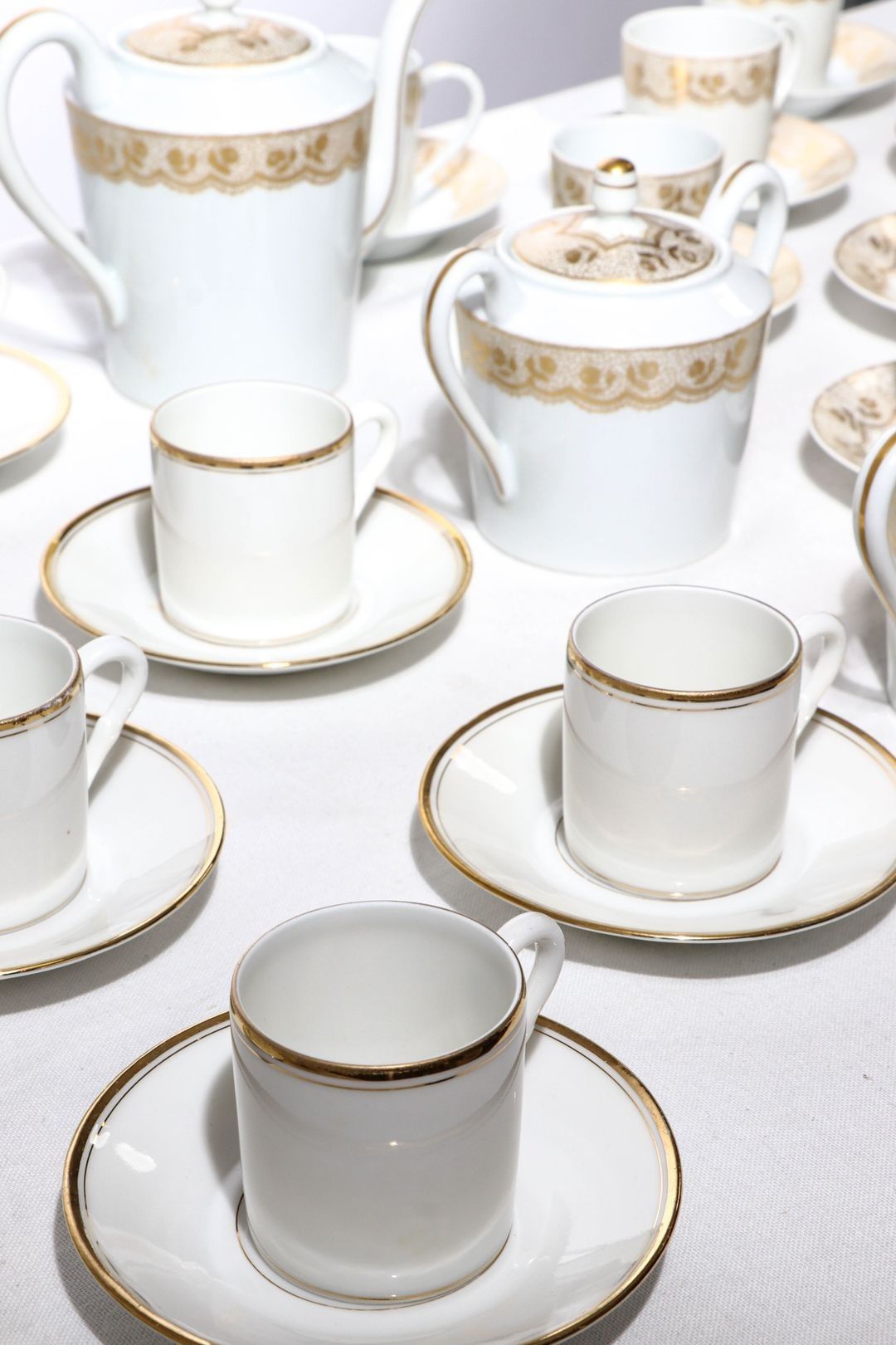 HAVILAND, Limoges. Part of a porcelain coffee service decorated with gilded floral friezes comprising :