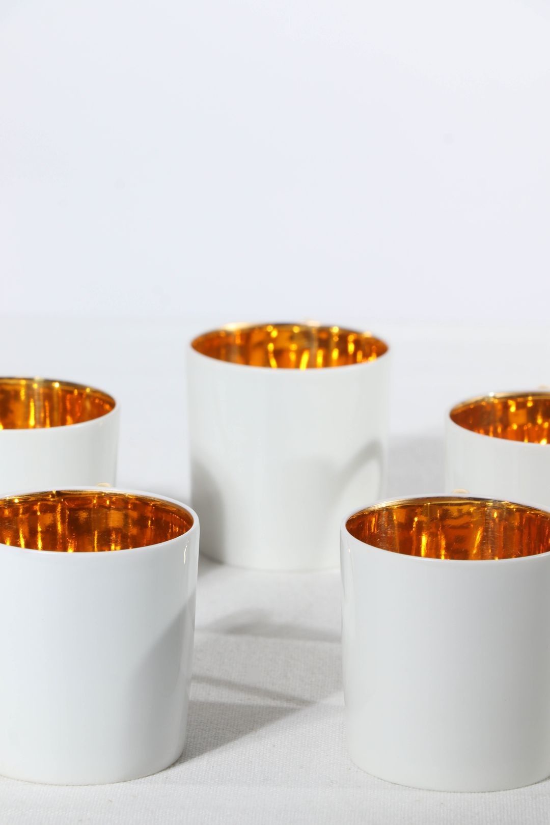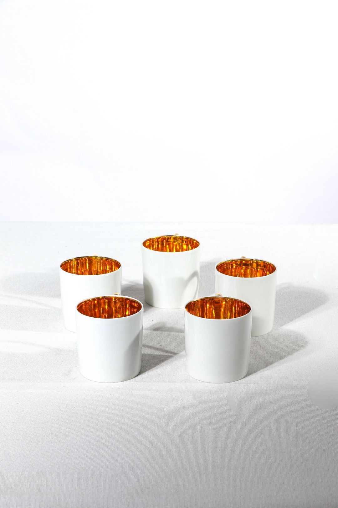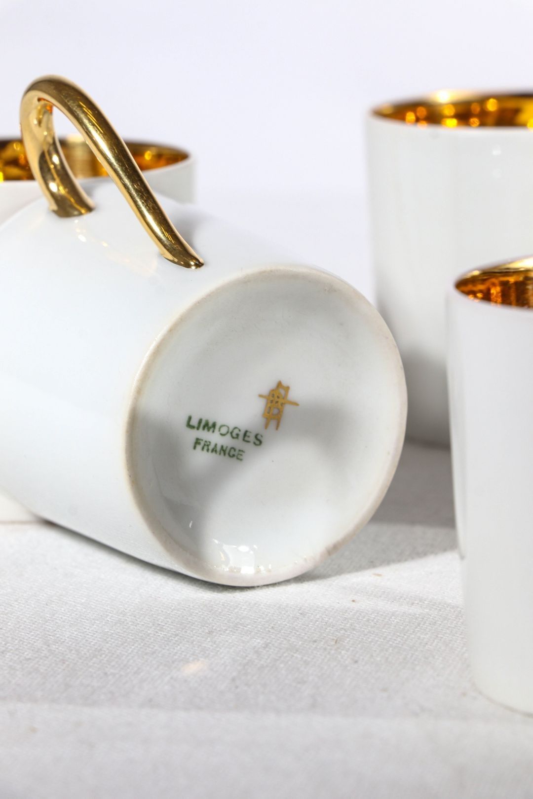 LIMOGES Set of 5 porcelain coffee cups, gilded interior.