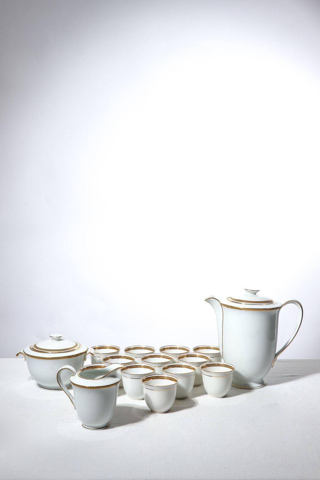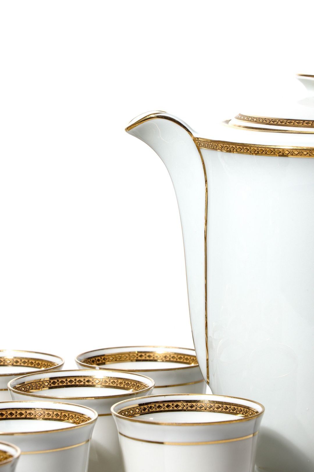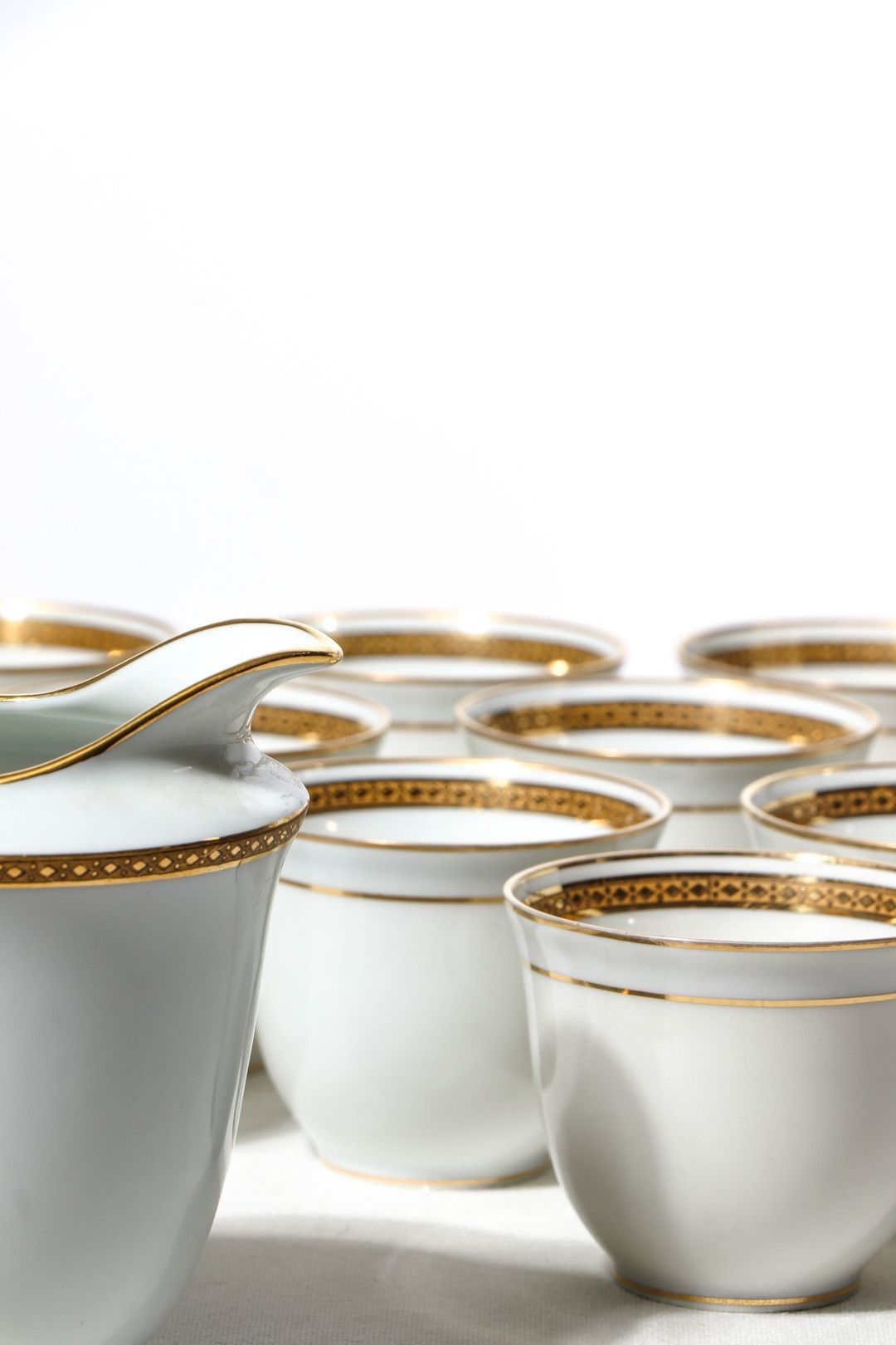 Porcelain dessert and coffee service with gilded decoration and geometric motifs comprising :