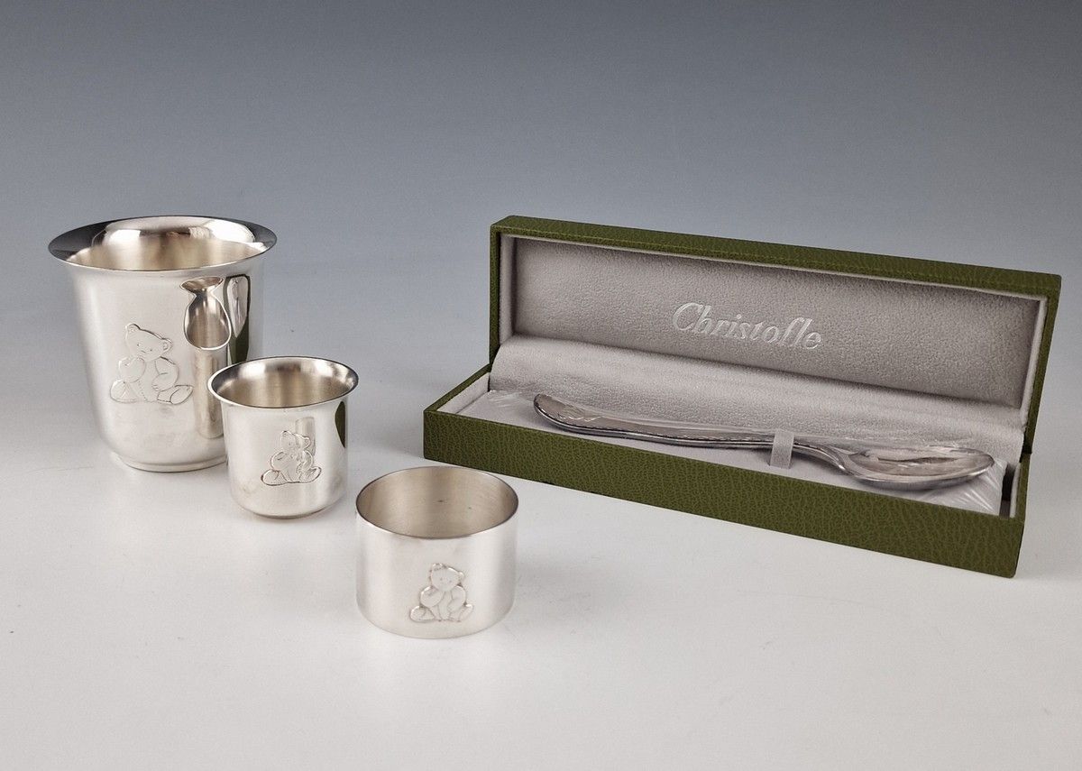 CHRISTOFLE - Modern silver-plated CHILDREN'S NECESSARY with teddy bear decoration