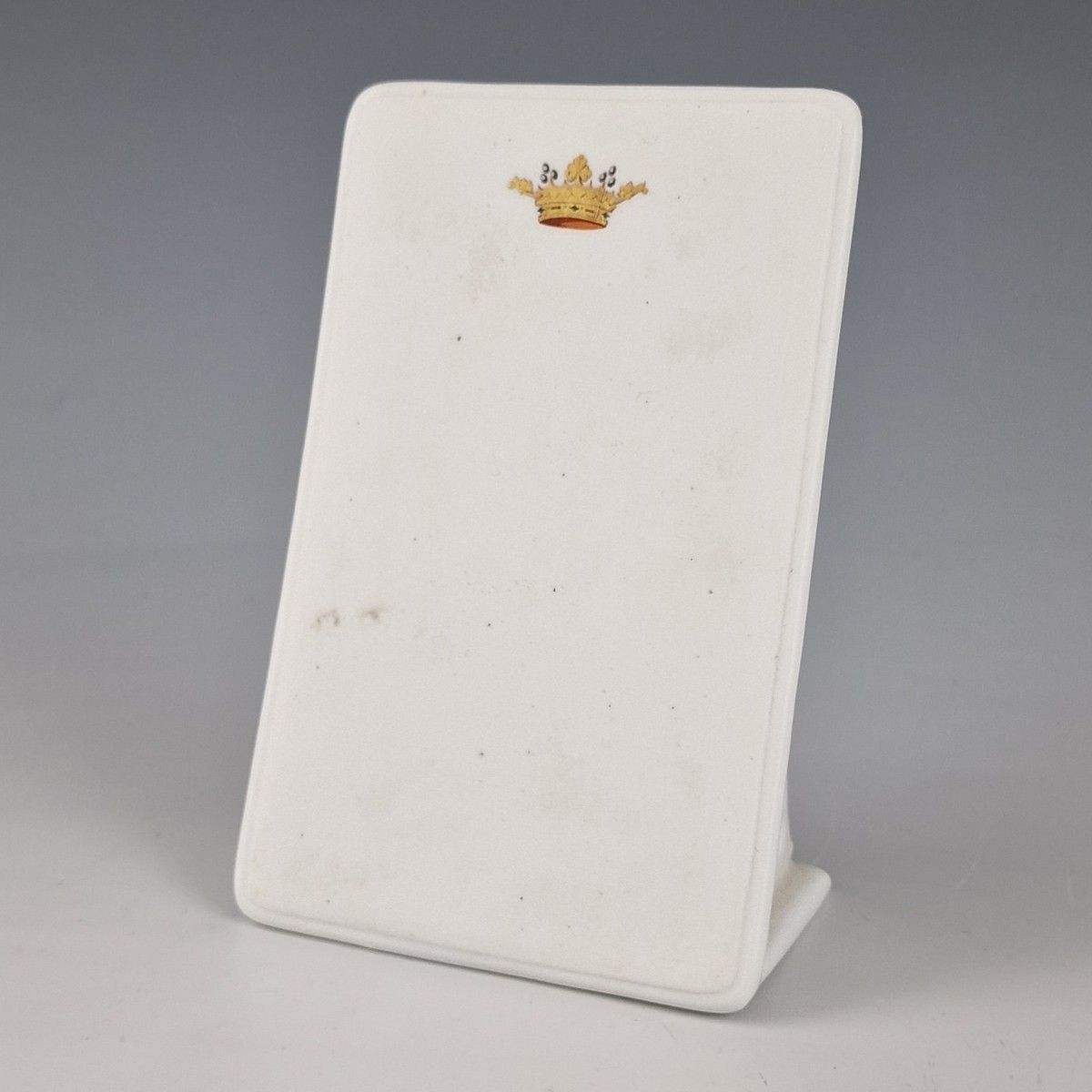 Bisque and white porcelain CHEVALET MENU HOLDER signed LAVOIVRE 71 rue du Bac from the Late 19th Century with gold and polychrome decoration of a marquis's crown