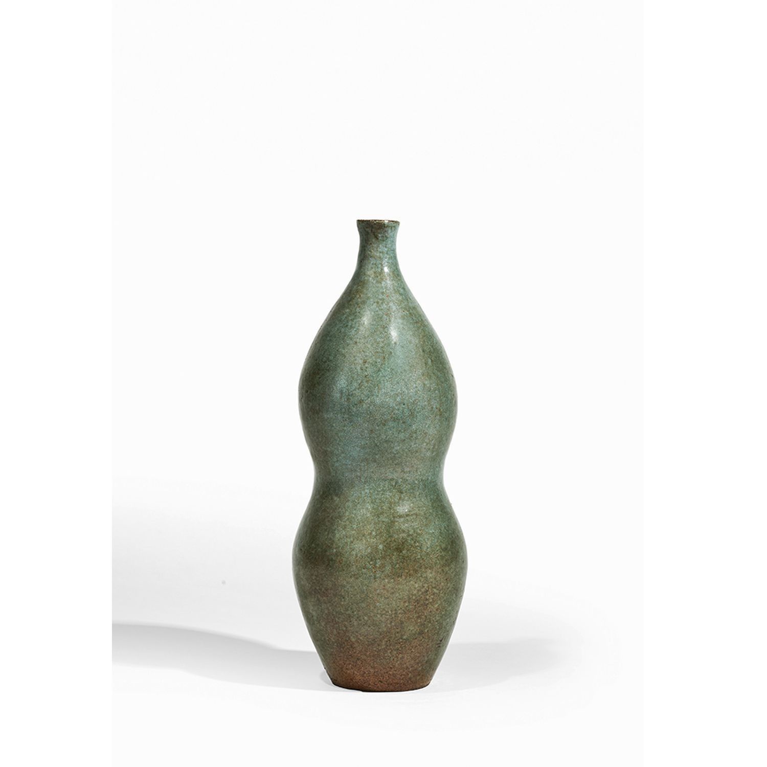 Very large bottle vase in grey-blue glazed earthenware, with curved body, double bulge and cylindrical neck. Handwritten signature incised on the reverse of the base "Raty Vallauris 1954".
