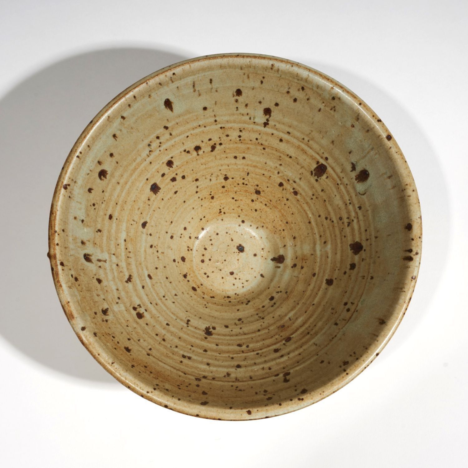 A large truncated conical bowl in beige pyrite stoneware. Stamped.