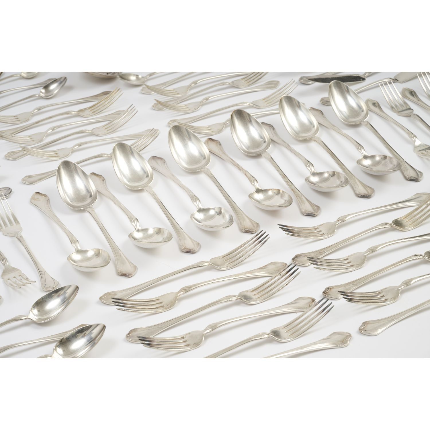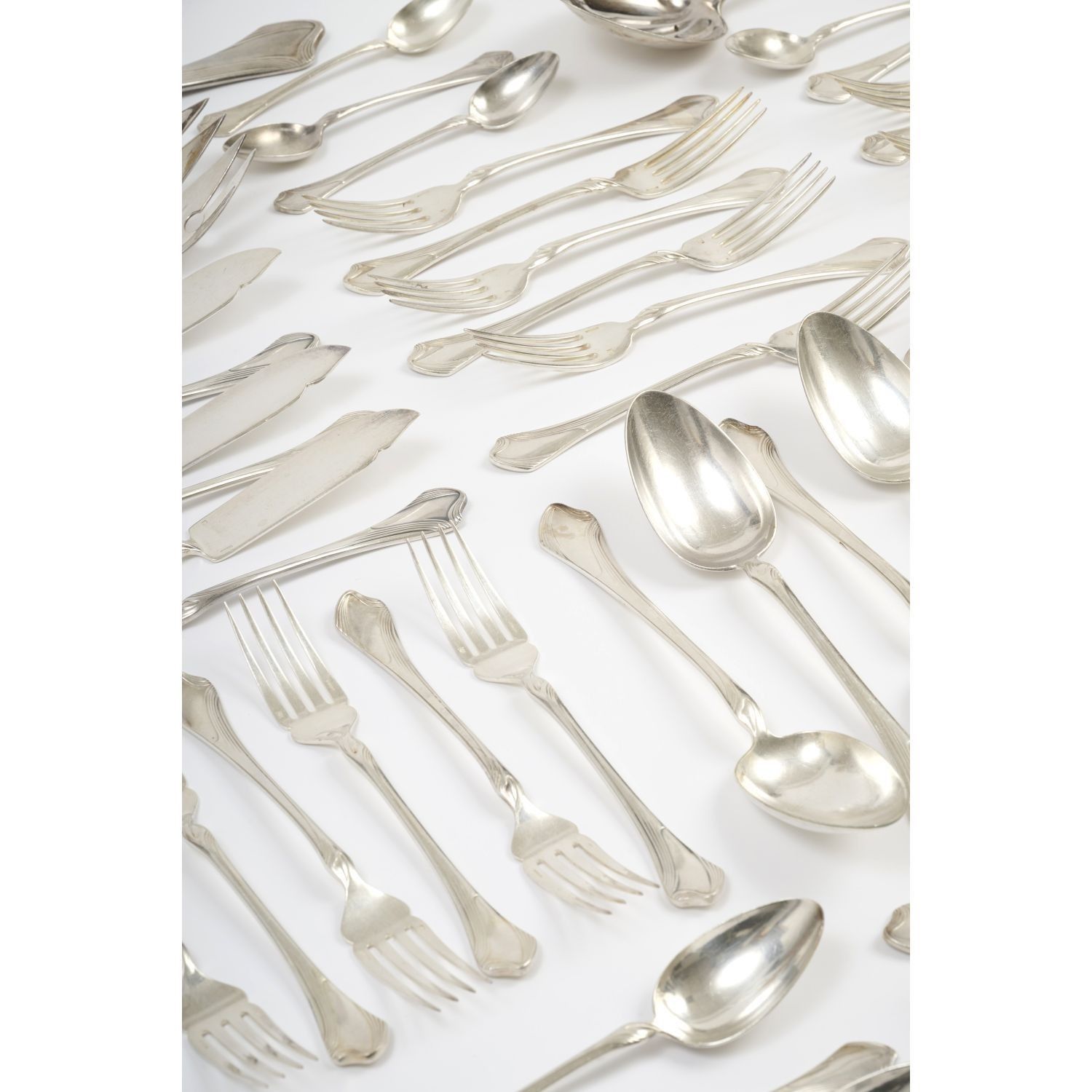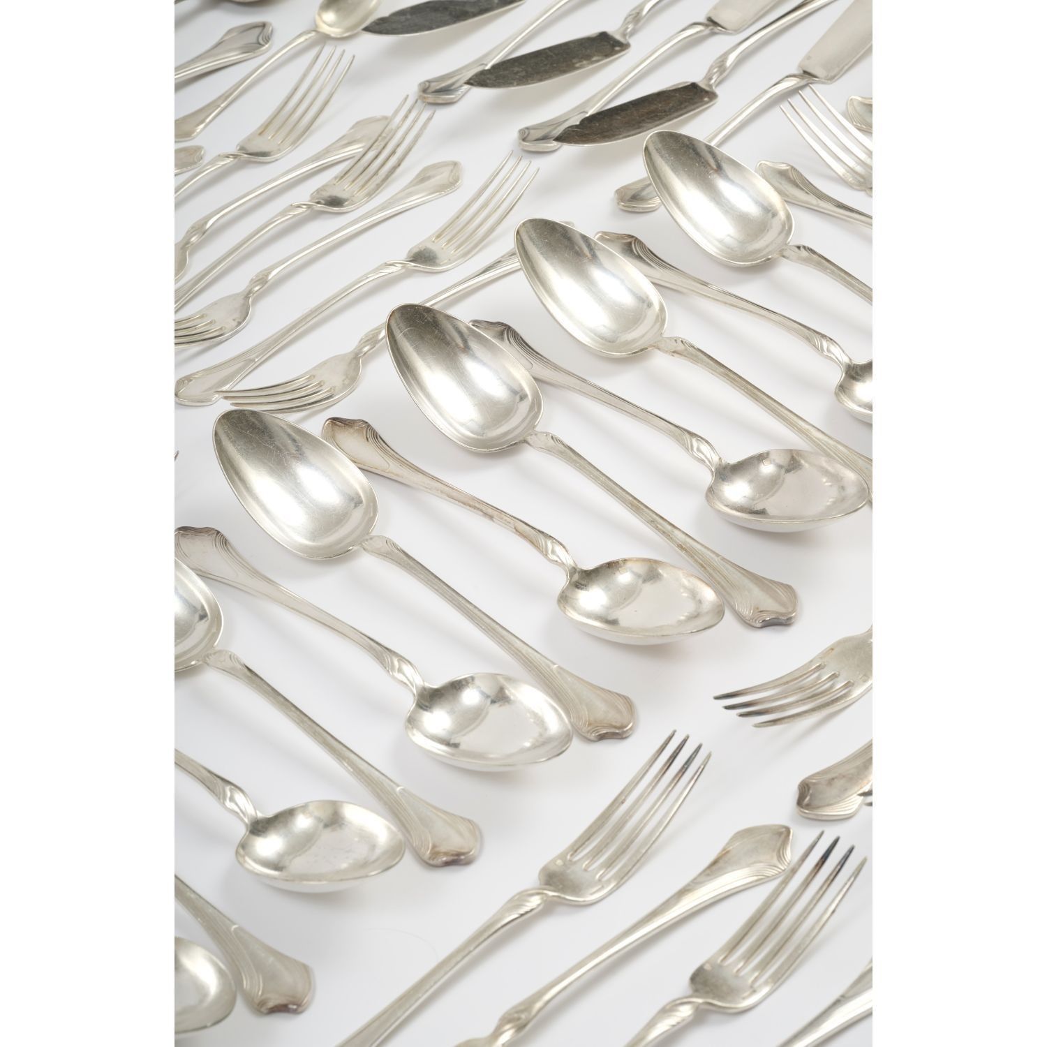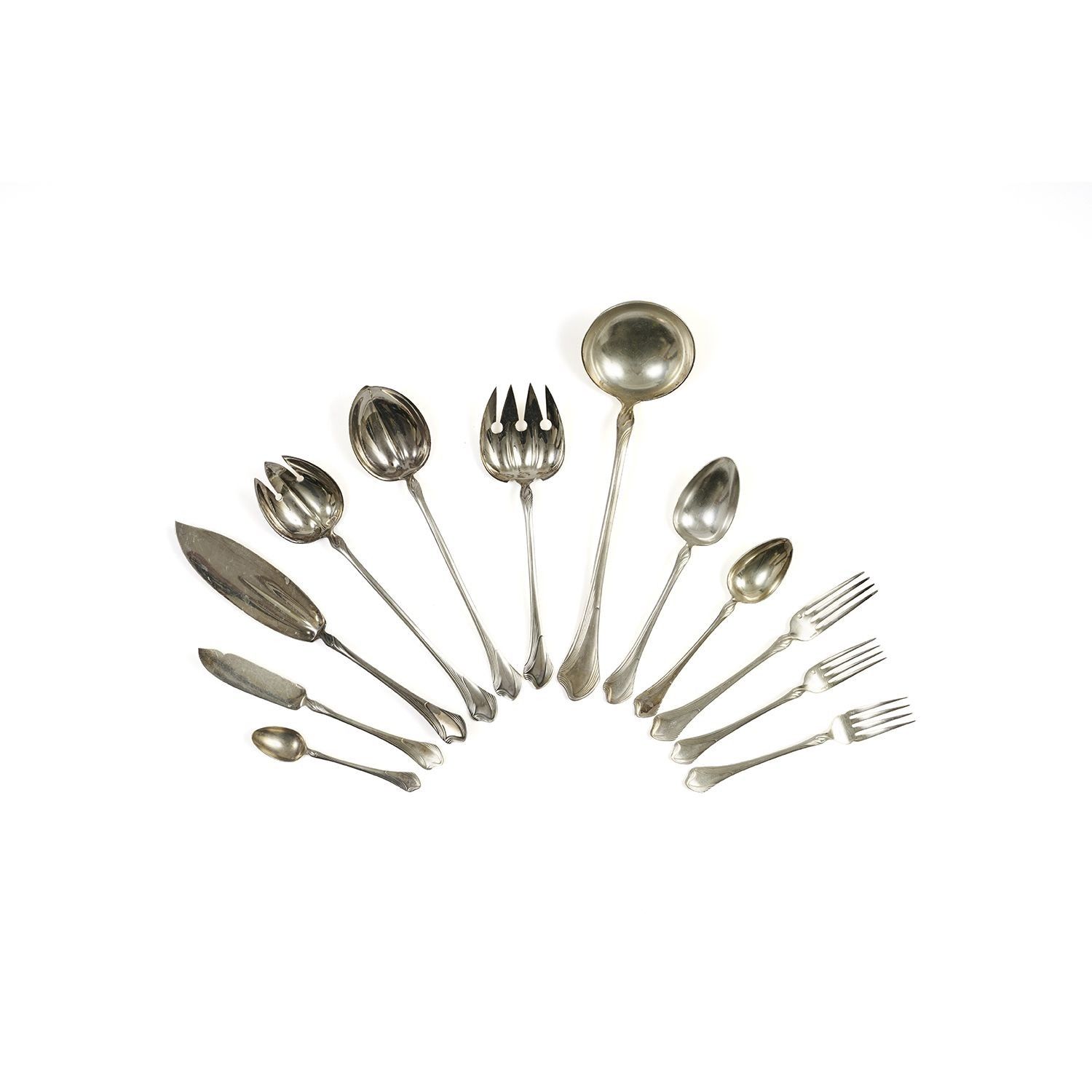 Part of a silver-plated "Moderne Gramont" model household set of 89 pieces, with Art Nouveau decoration, comprising :