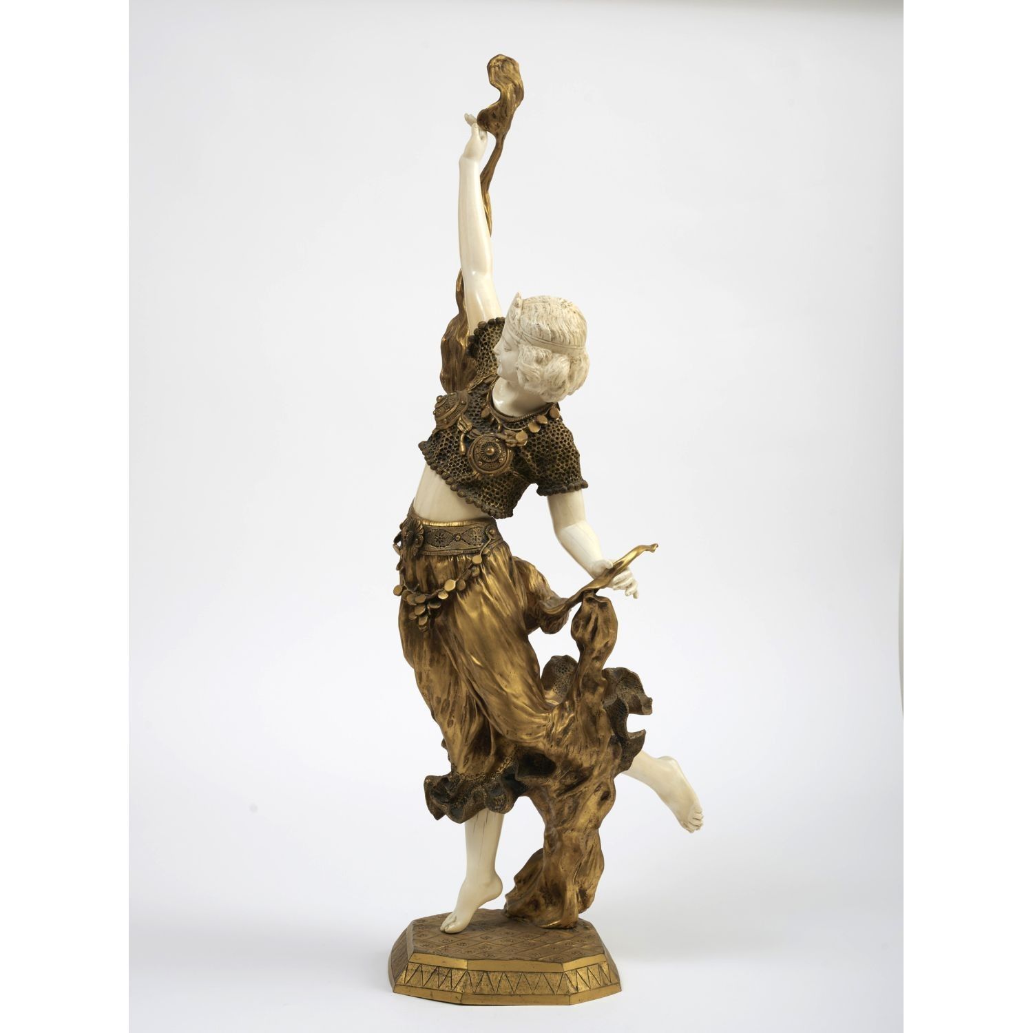 An important chryselephantine sculpture in gilt-patinated bronze and ivory. Signed.