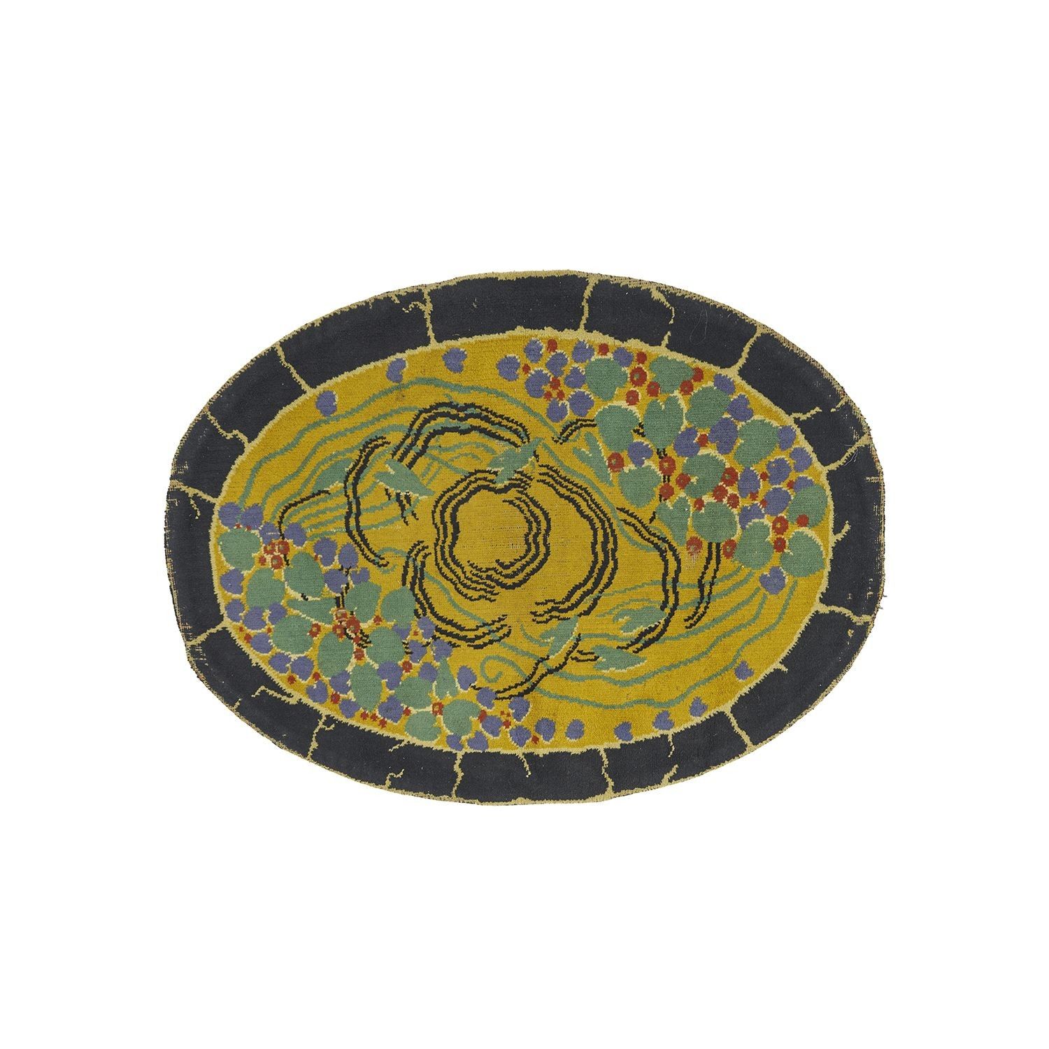 A 'Nymphea' oval rug in polychrome wool (Wear along the edges)