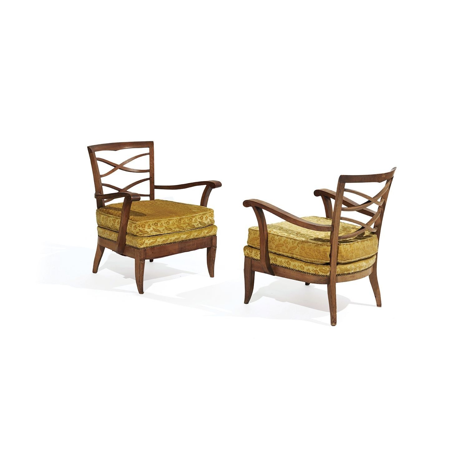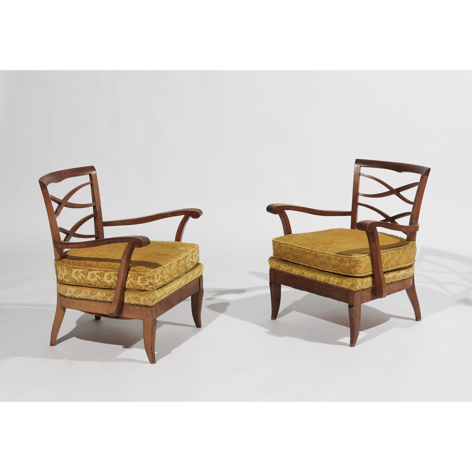 Premium JULES LELEU (attributed to) Pair of large low armchairs, in …