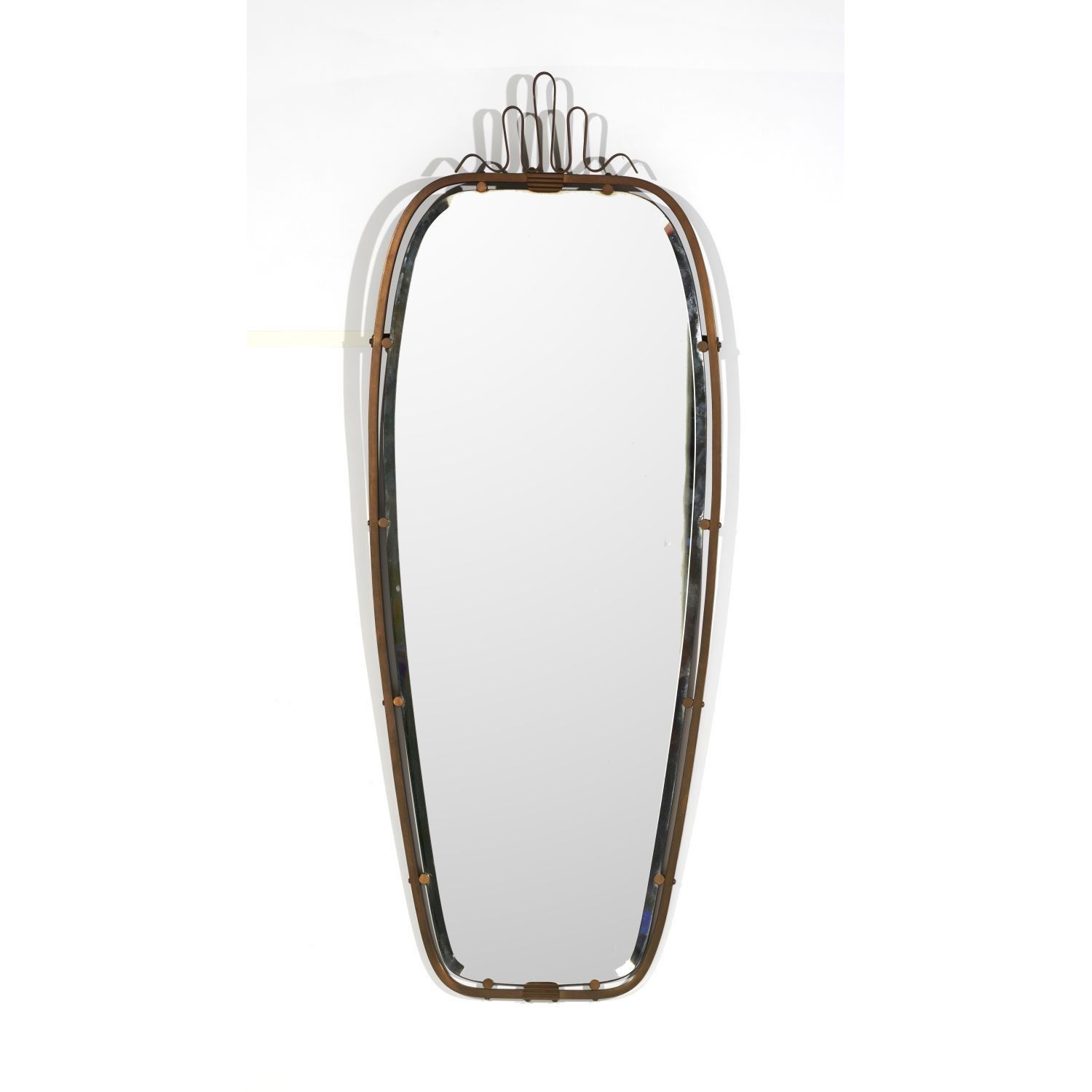 Premium GIO PONTI (ATTRIBUTED TO) Ovoid mirror with brass frame topp…
