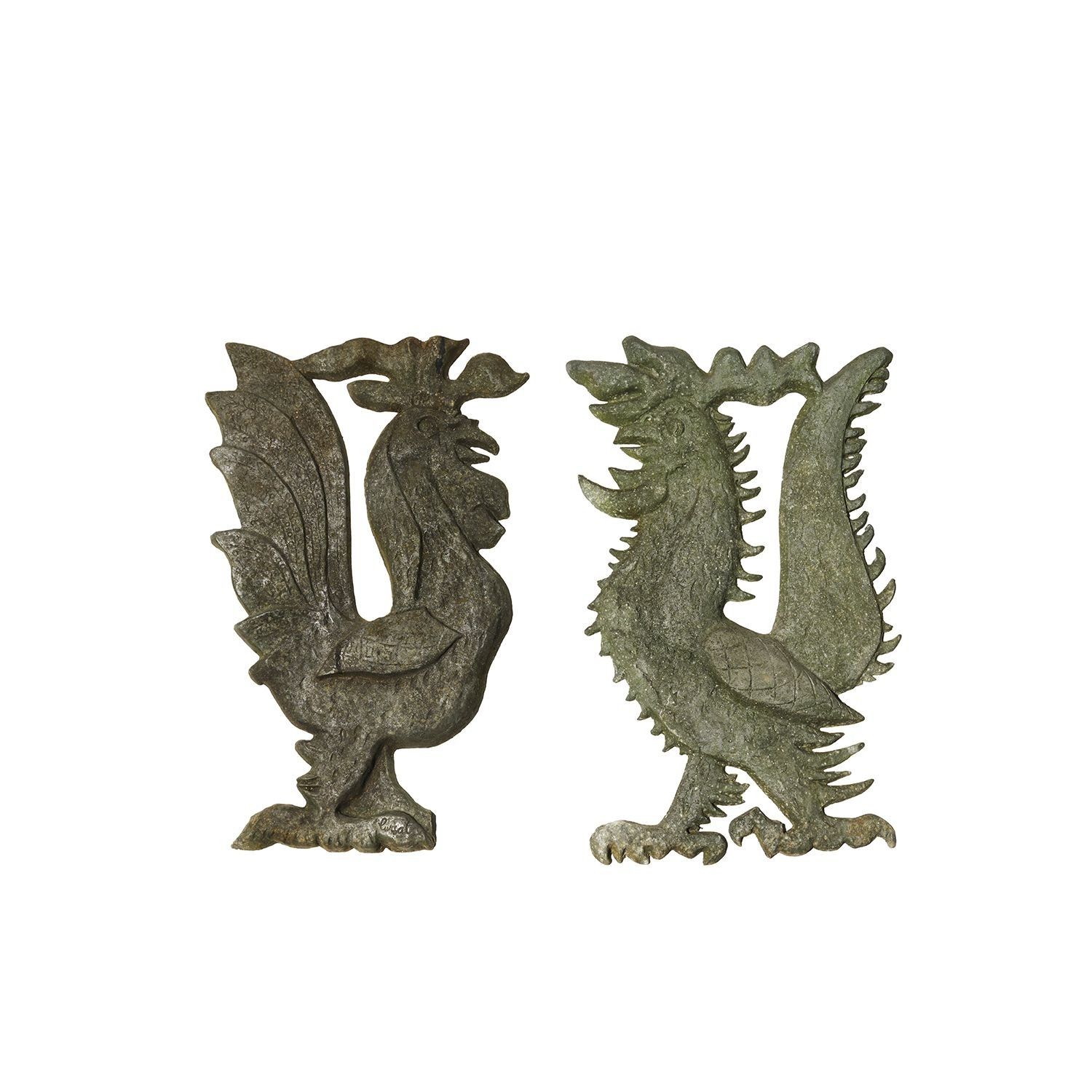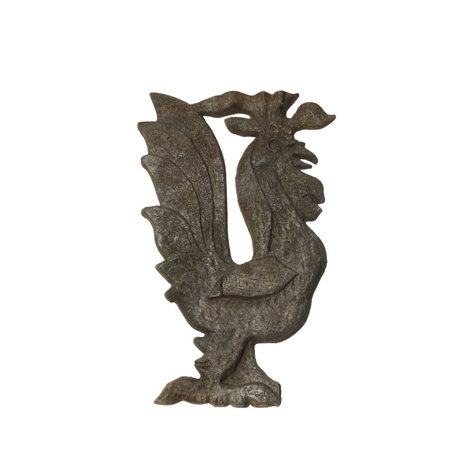 Set of two decorative bas-reliefs in cast aluminium, each symbolising a cockerel. Each piece is signed "Lurçat".