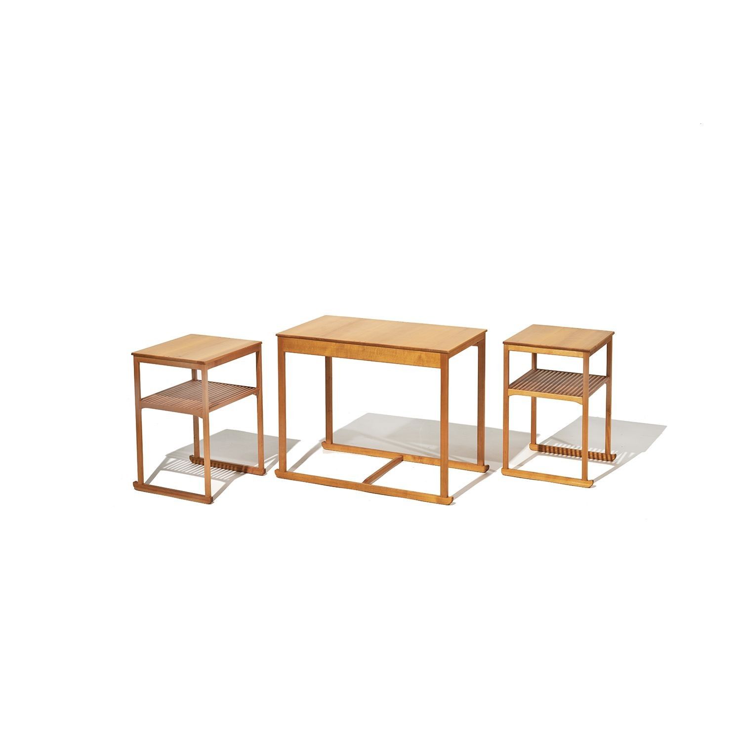 A 'Släden' coffee table in birch, with two nesting tables. Hot-stamp mark.