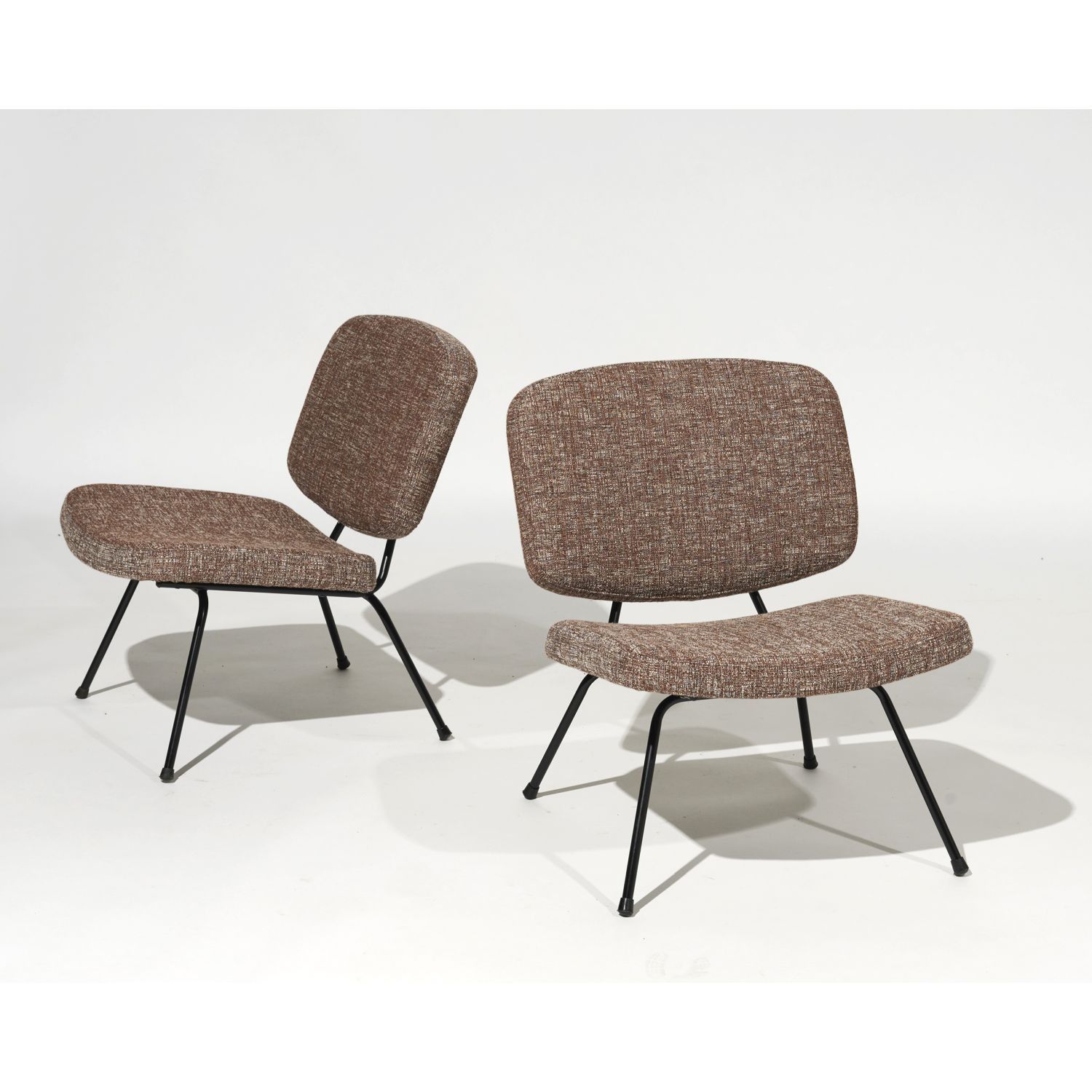 A pair of CM 190 armchairs in lacquered tubular metal, moulded plywood, foam, and heathered wool. Edited by Thonet.