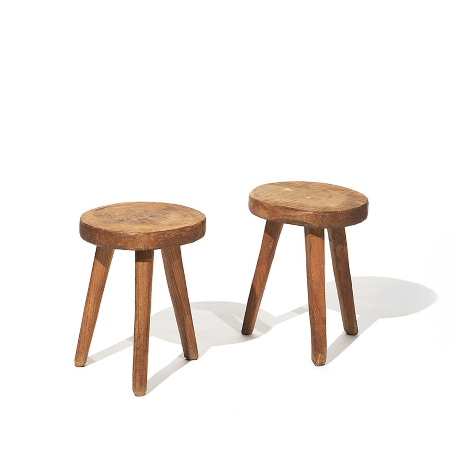 CHARLES FLANDRE (1898-1970) Pair of rustic stools in solid e…