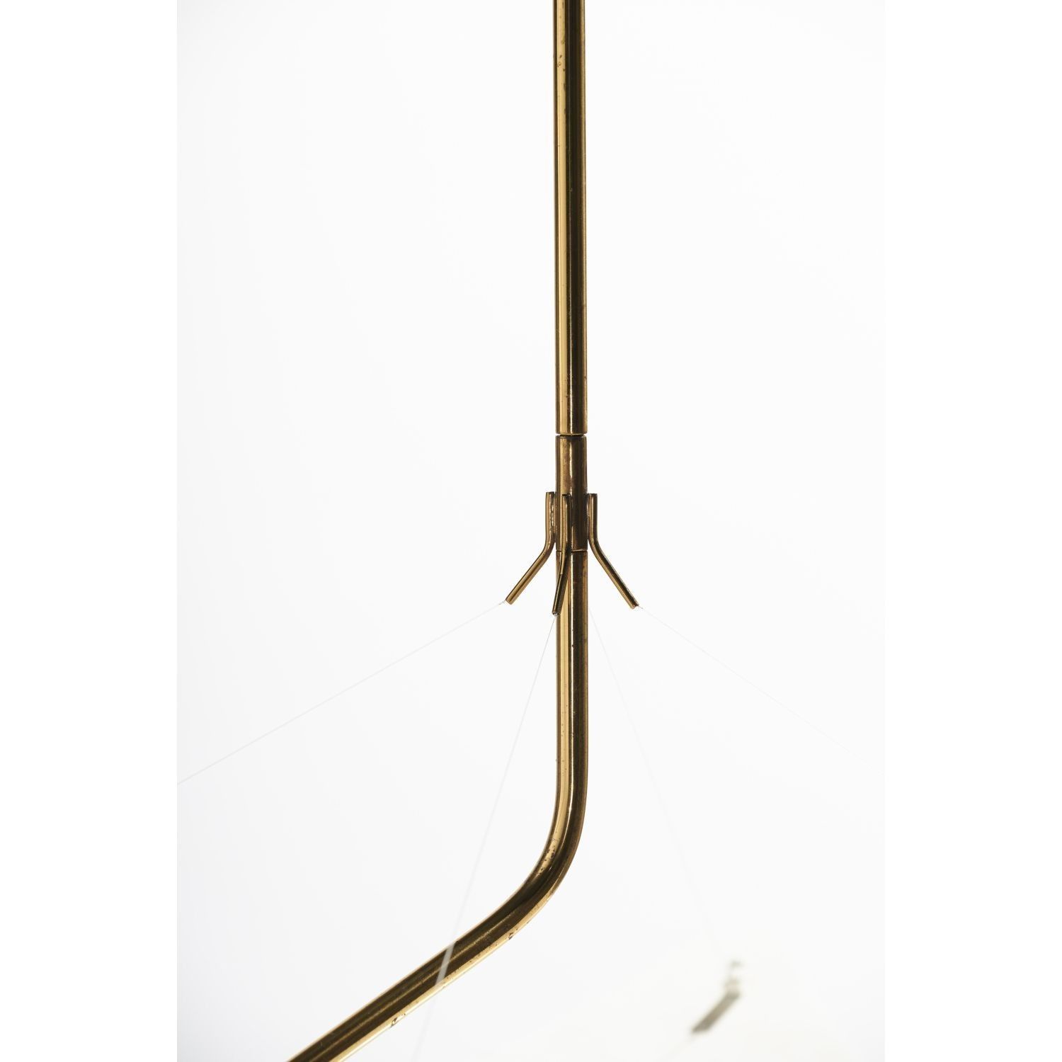A 'Vela' model 12385 suspension in brass tubing and lacquered metal sheet, suspended by nylon wires. Edited by Arredoluce.