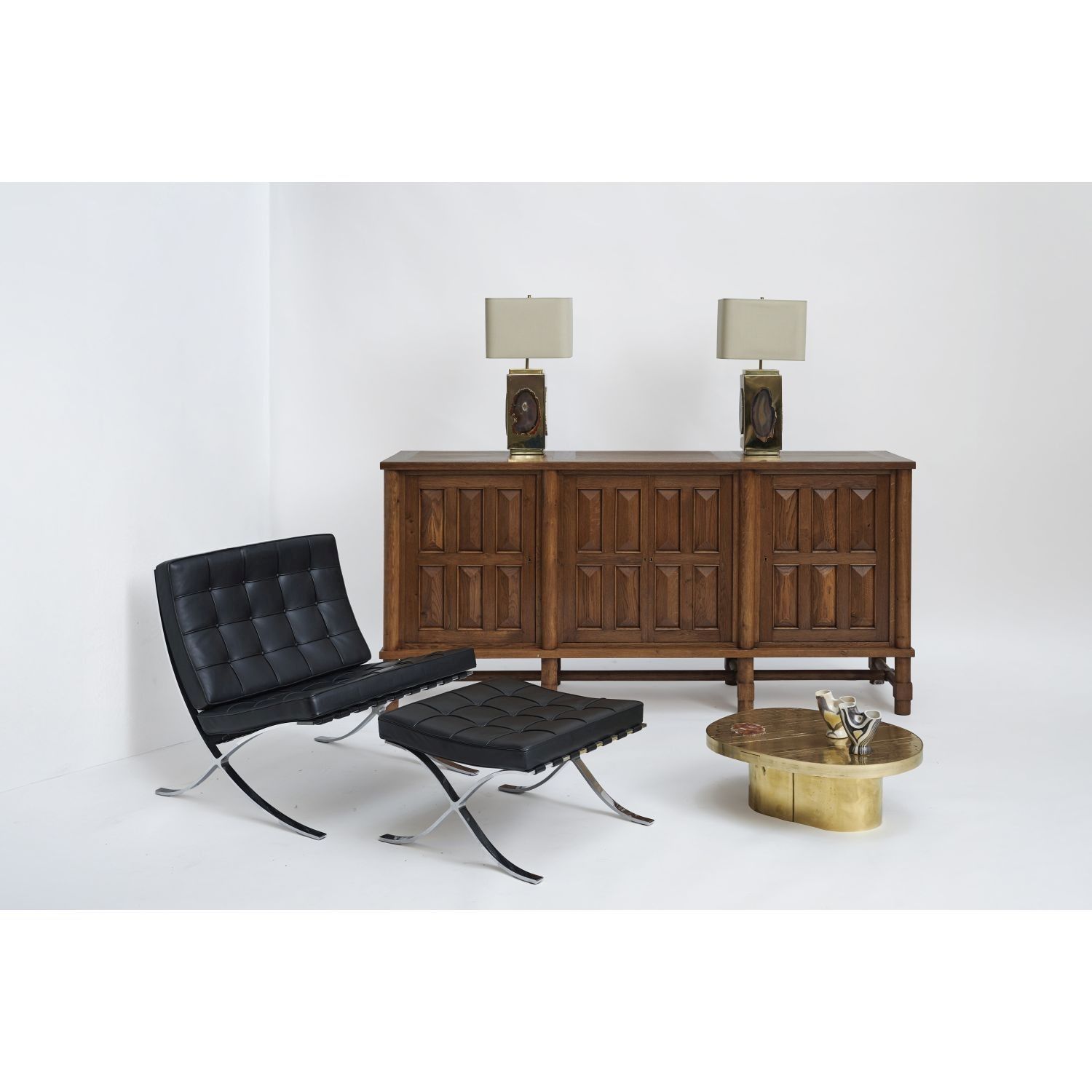 Premium GEORGES MATHIAS Pair of parallelepiped lamps in gilded metal…