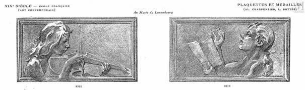 Two examples of the "Le Violon" plaque are in the Musée d'Orsay Collections under inventory references OAO 56 and OAO 61 and the "Le Chant" plaque under inventory reference MEDOR 1933.