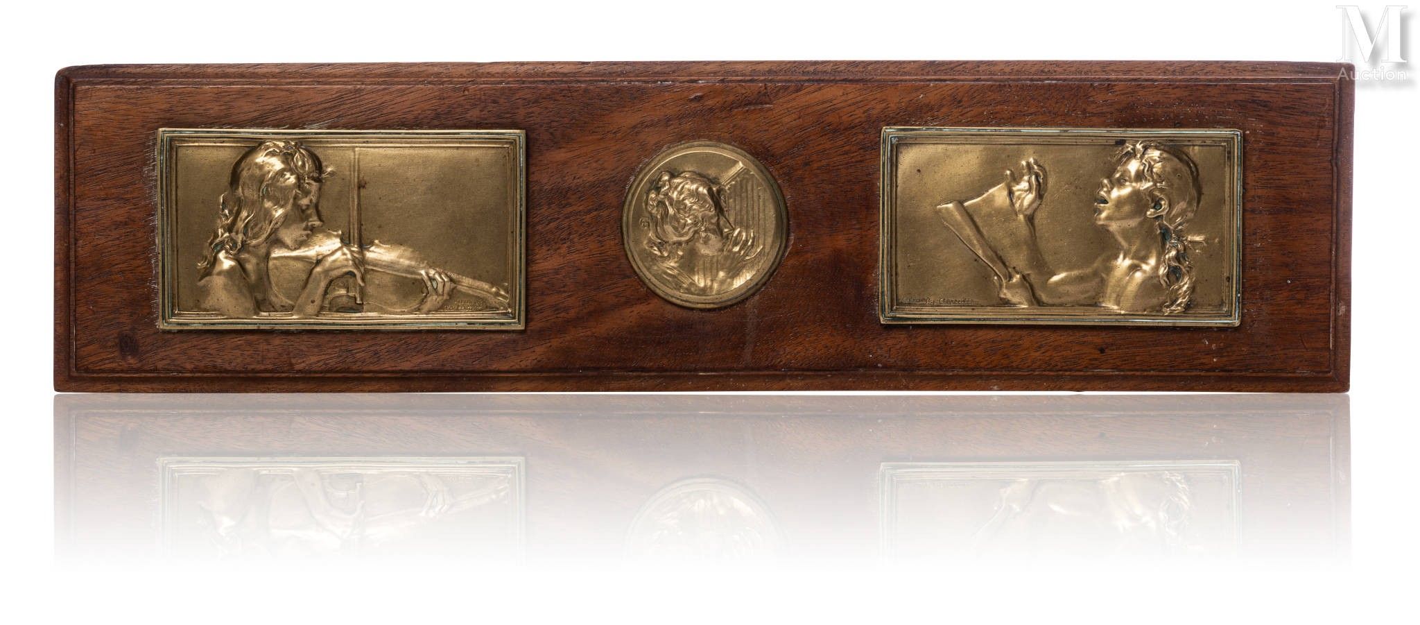 A set of three gilded bronze plates designed by Alexandre Charpentier including :