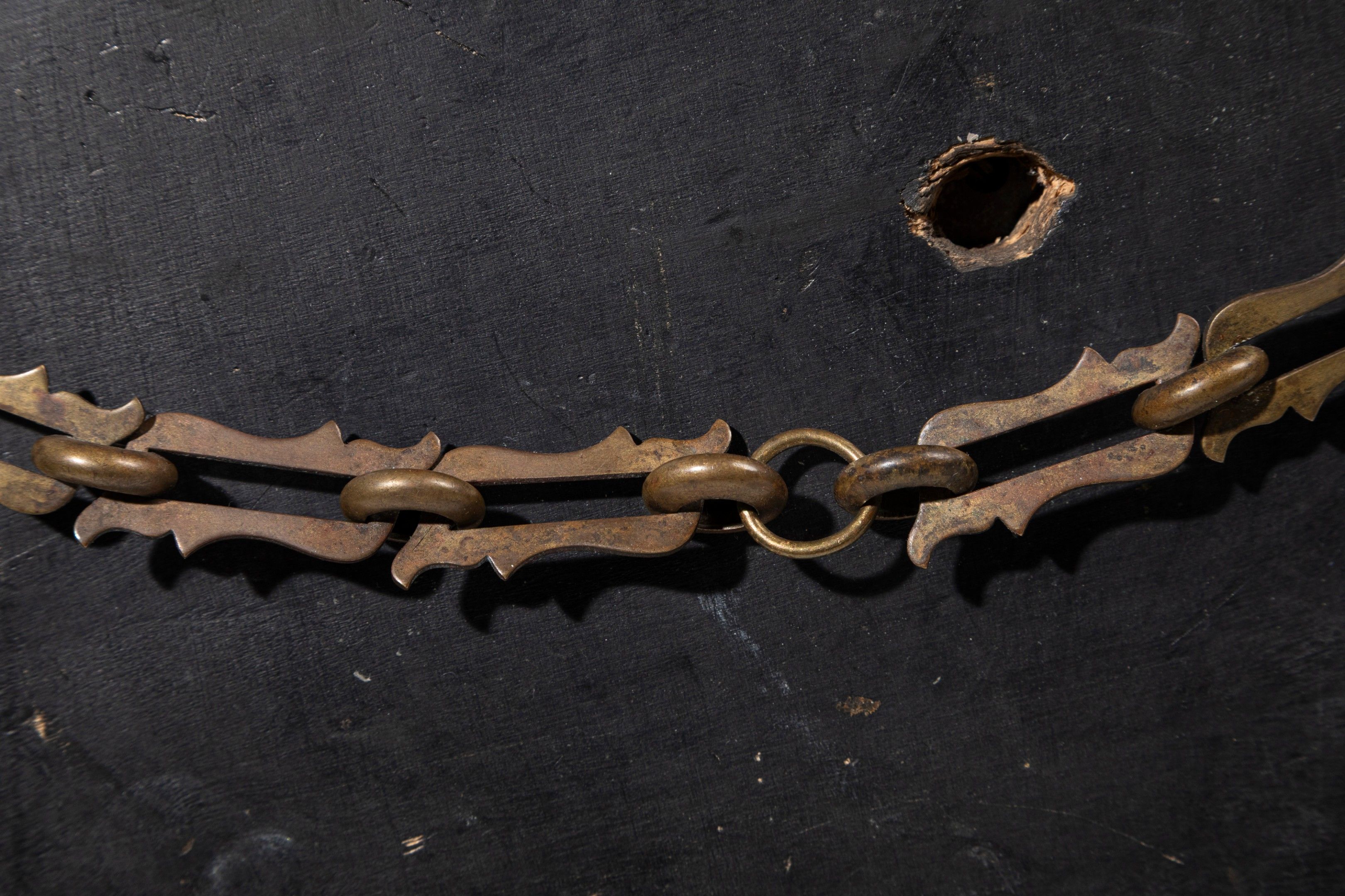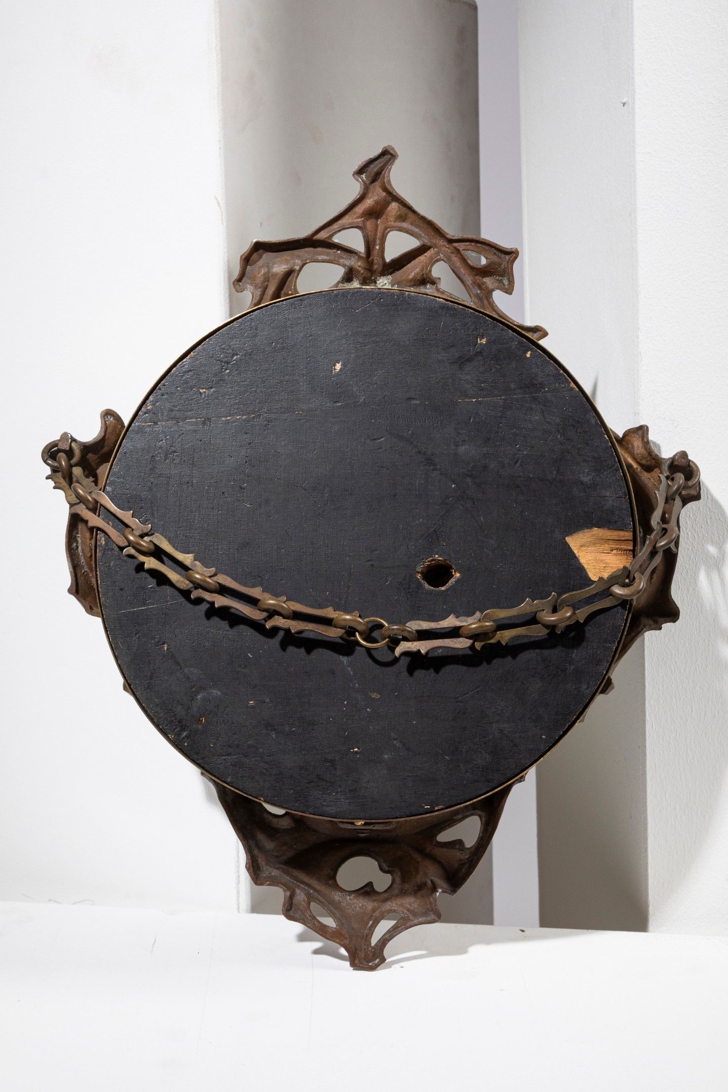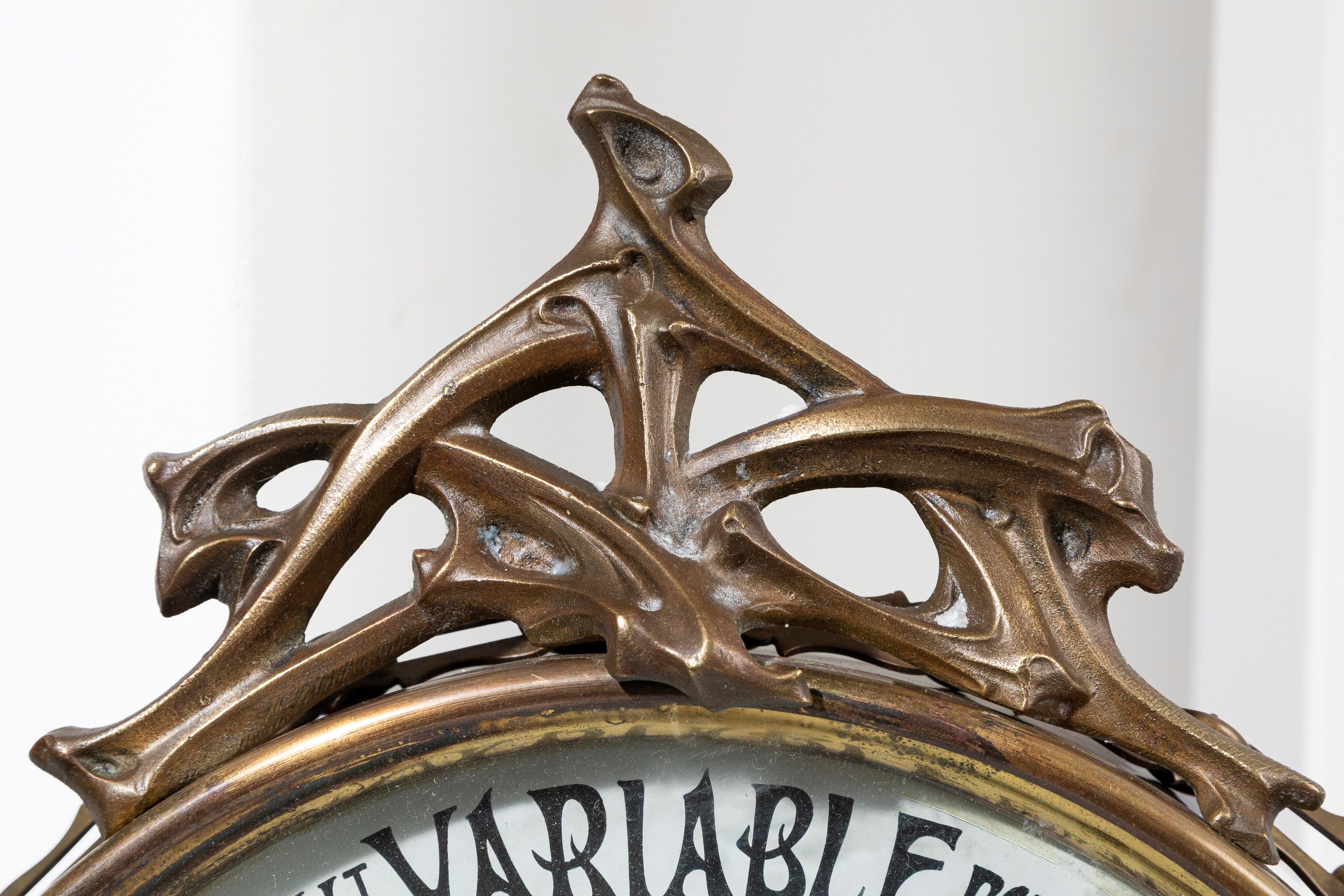 Wall barometer with circular copper case decorated with plant motifs in patinated bronze