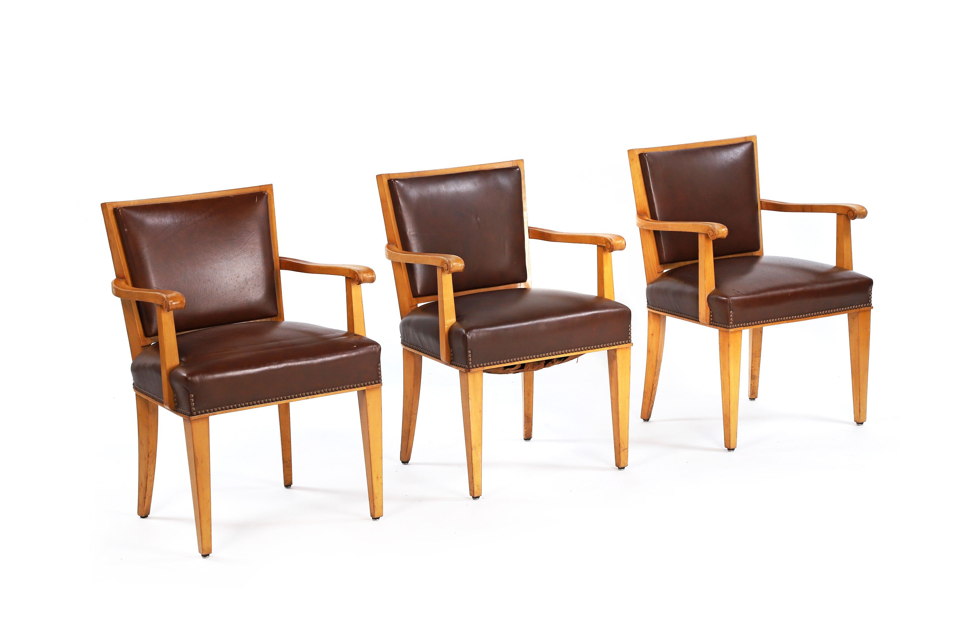 JULES LELEU (1883-1961) Suite of four armchairs.