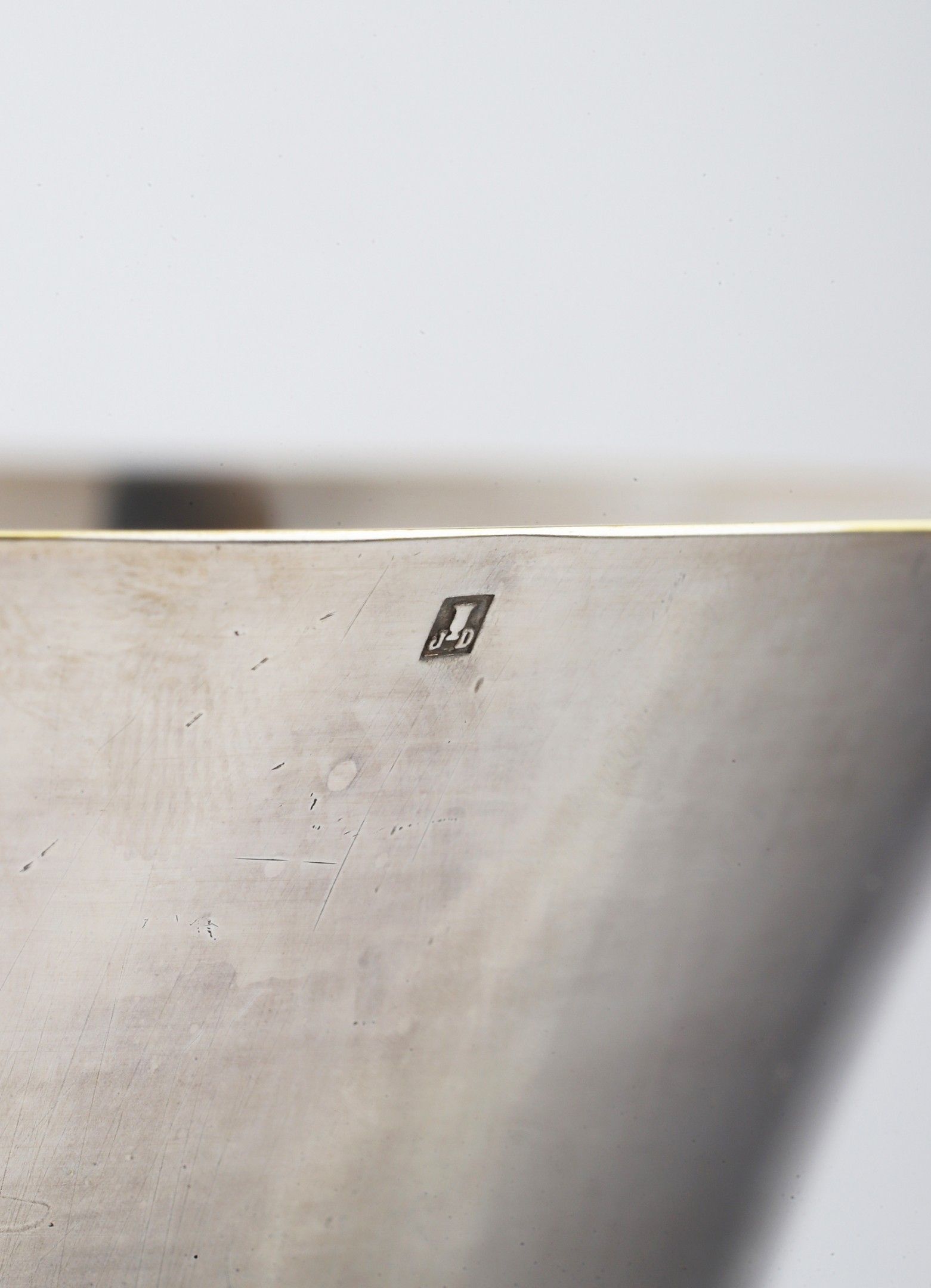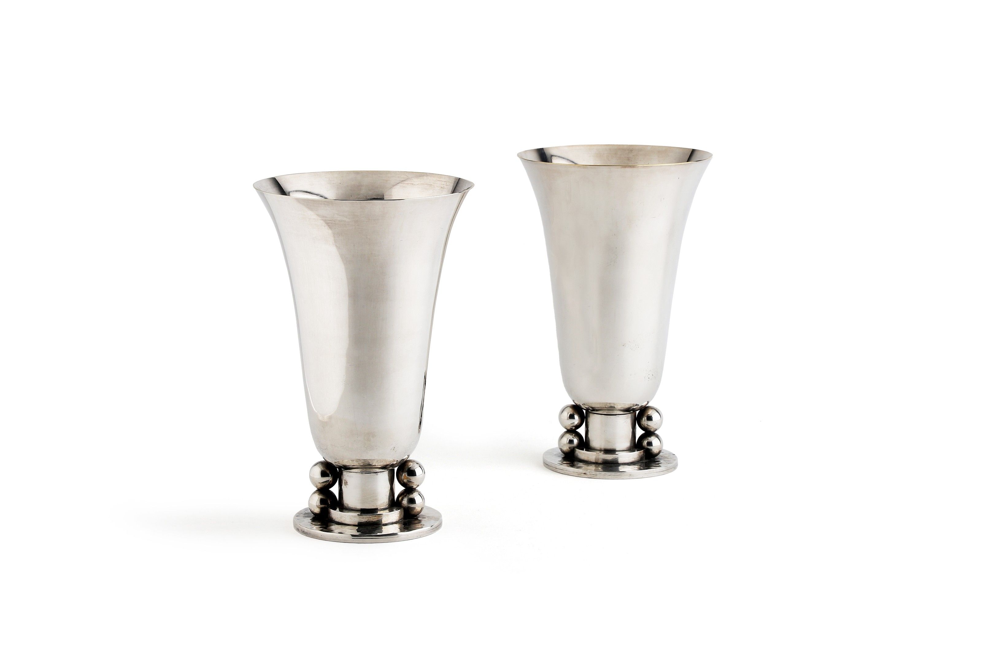 A pair of silver-plated metal vases, partially hammered. Signed and silversmith's hallmarks.
