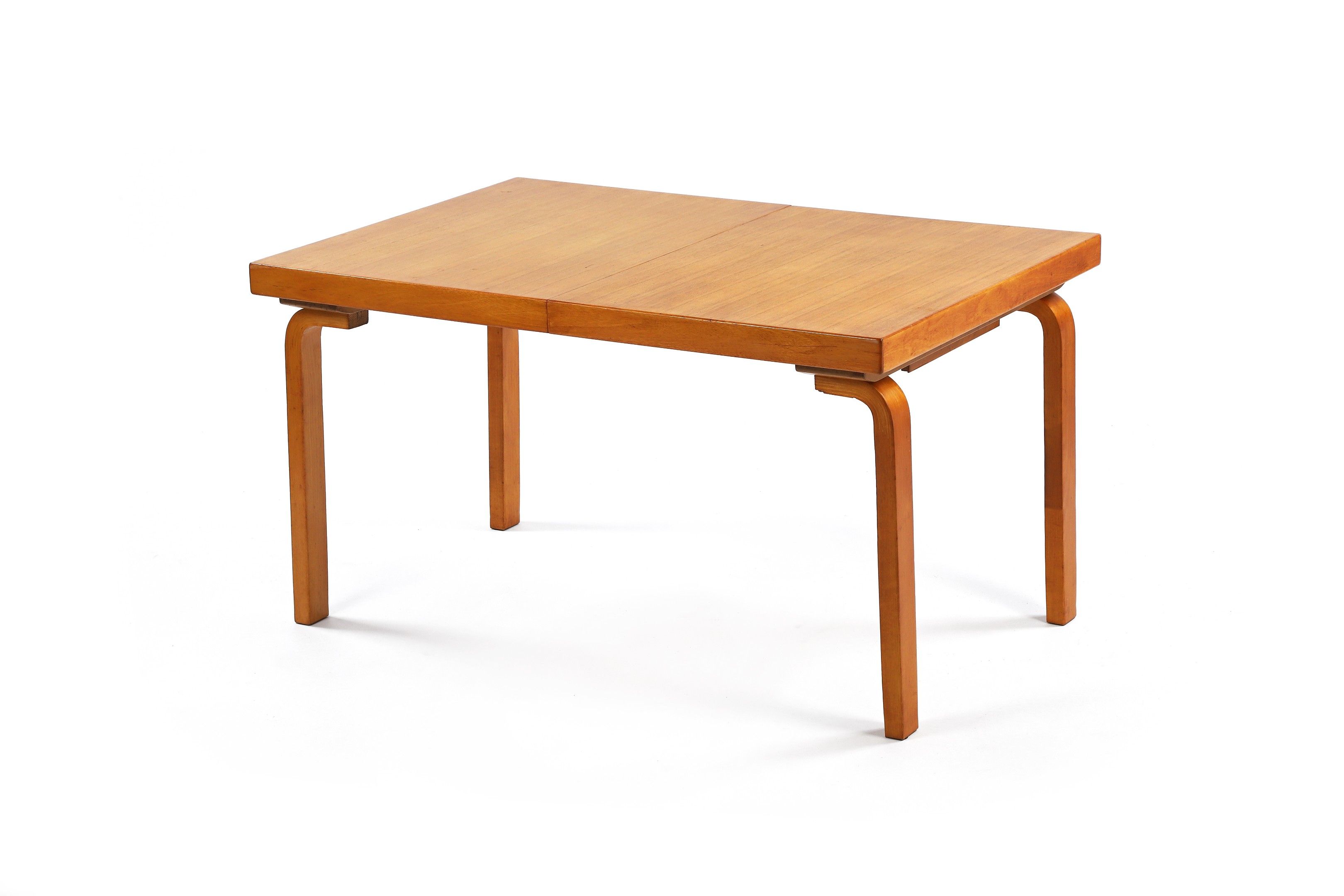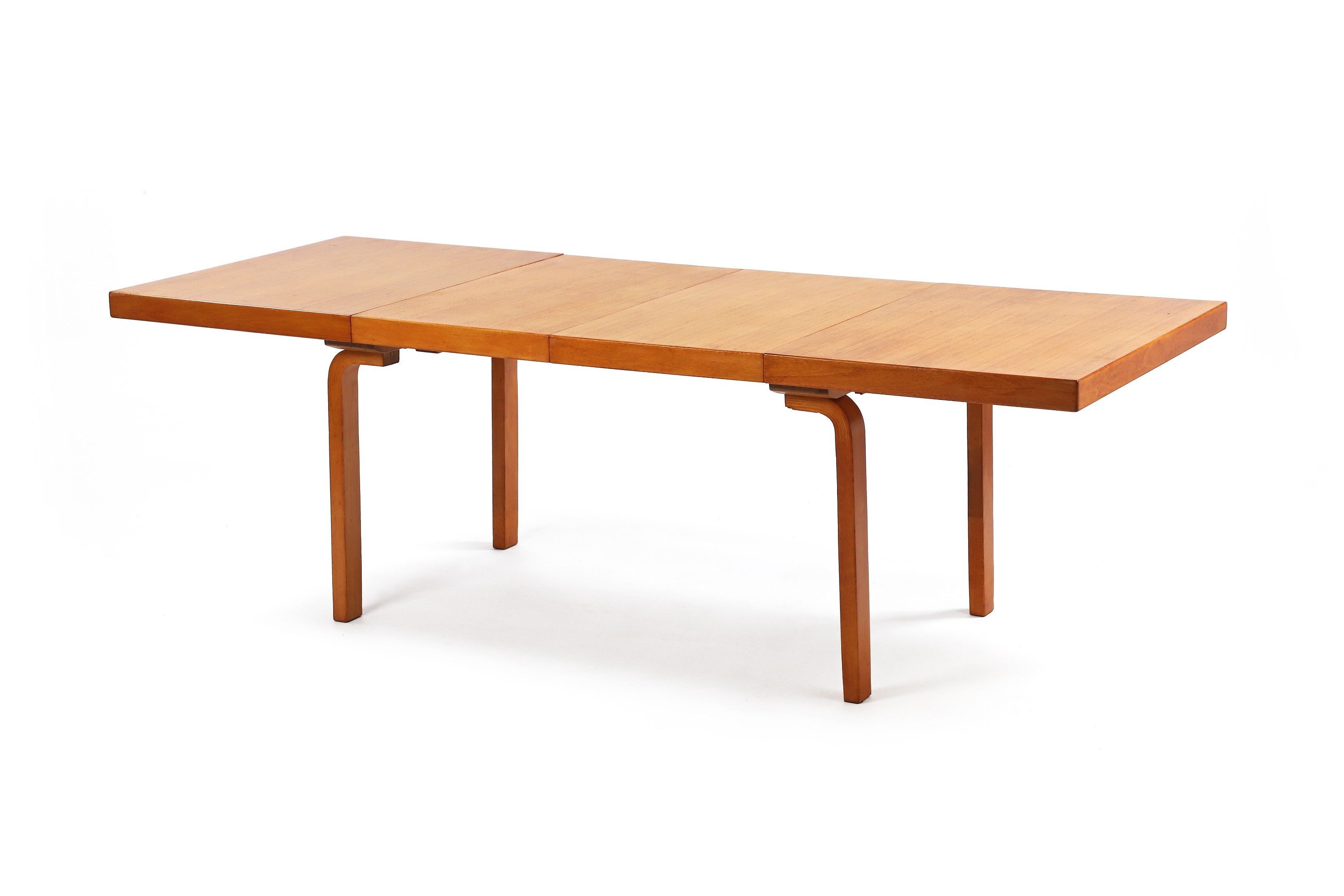 A dining table, model '92', c. 1940, revarnished curved birch, with two extensions.