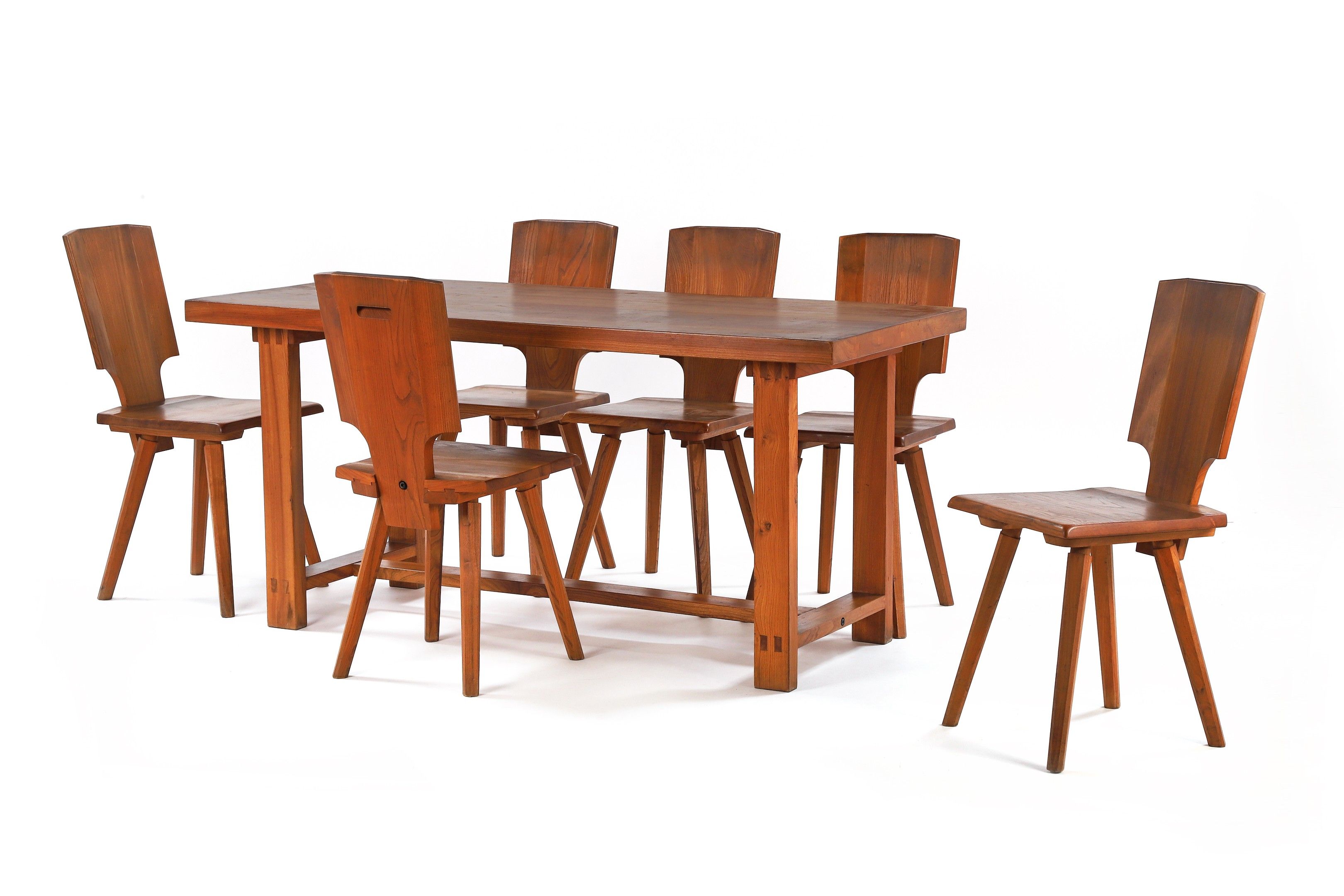 PIERRE CHAPO (1927-1987) Suite of six chairs, model 'S28' cr…