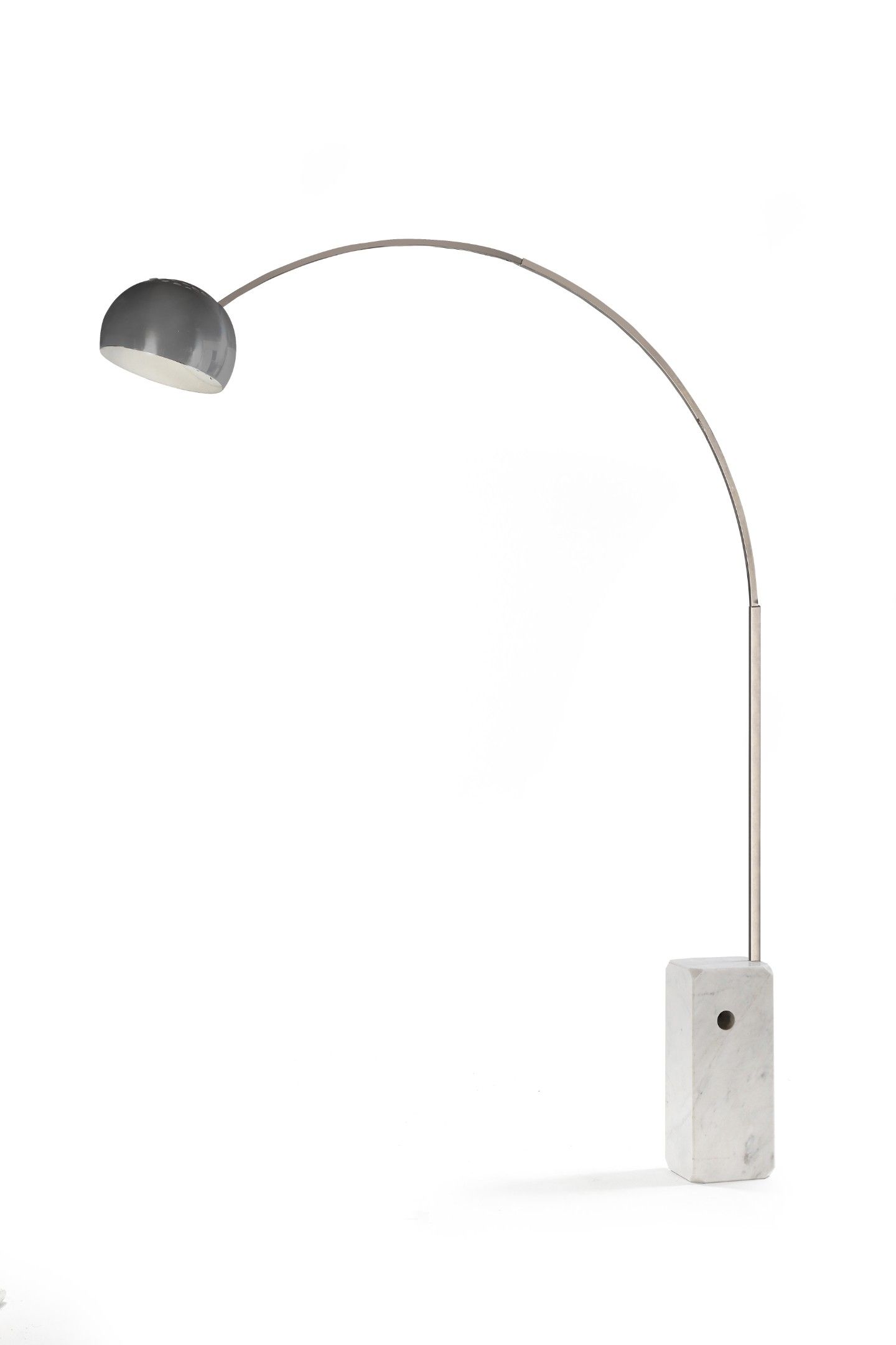 A floor lamp, model 'Arco' designed in 1962, produced c. 1968, marble base, chromed metal stem and deflector.