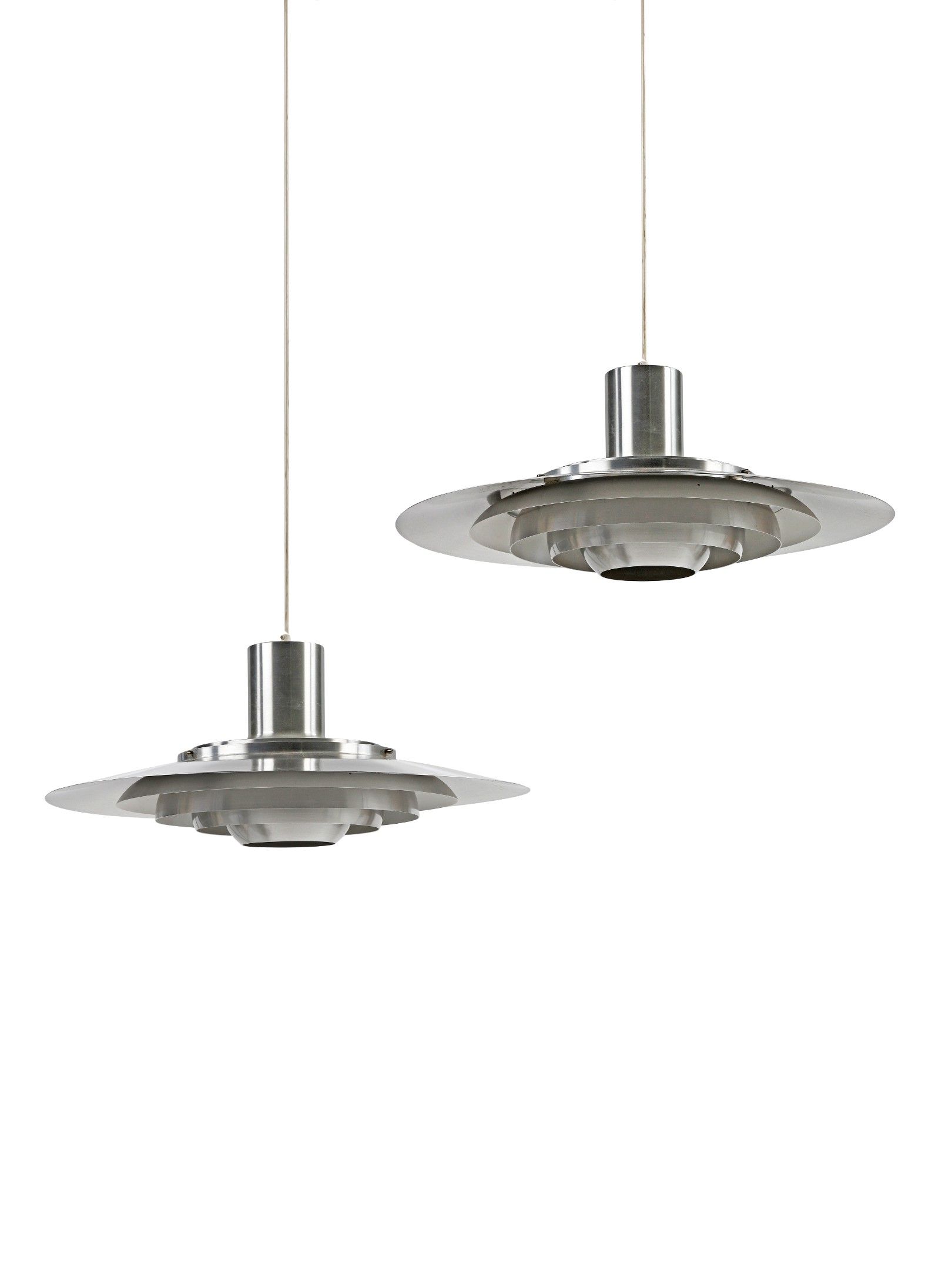 A ceiling lamp, model '74407' designed in 1964, superimposed aluminium rings.