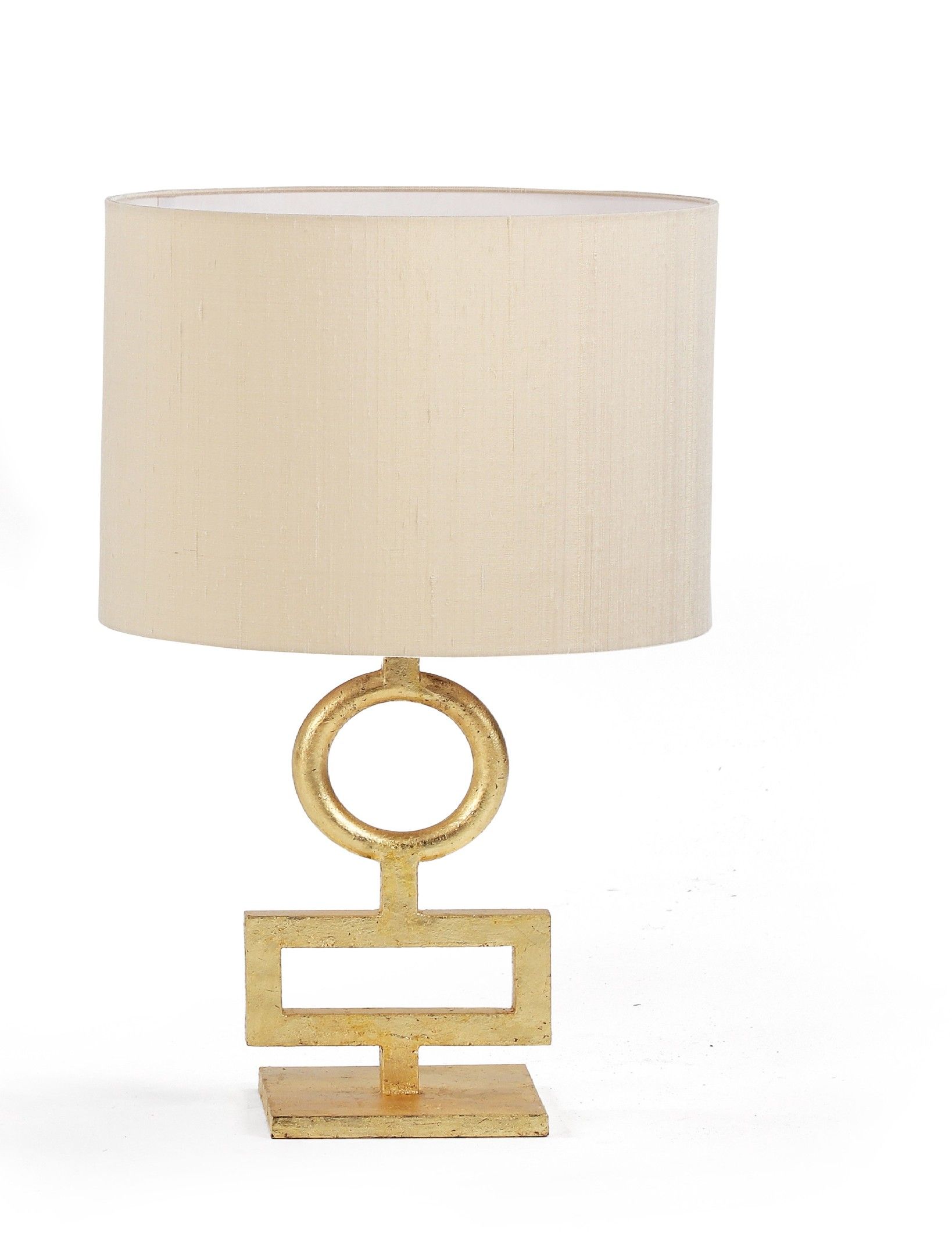 An 'Or(s)' lamp, gold leaf wrought iron, late white cotton lampshade. Artist's monogram and producer's stamp.