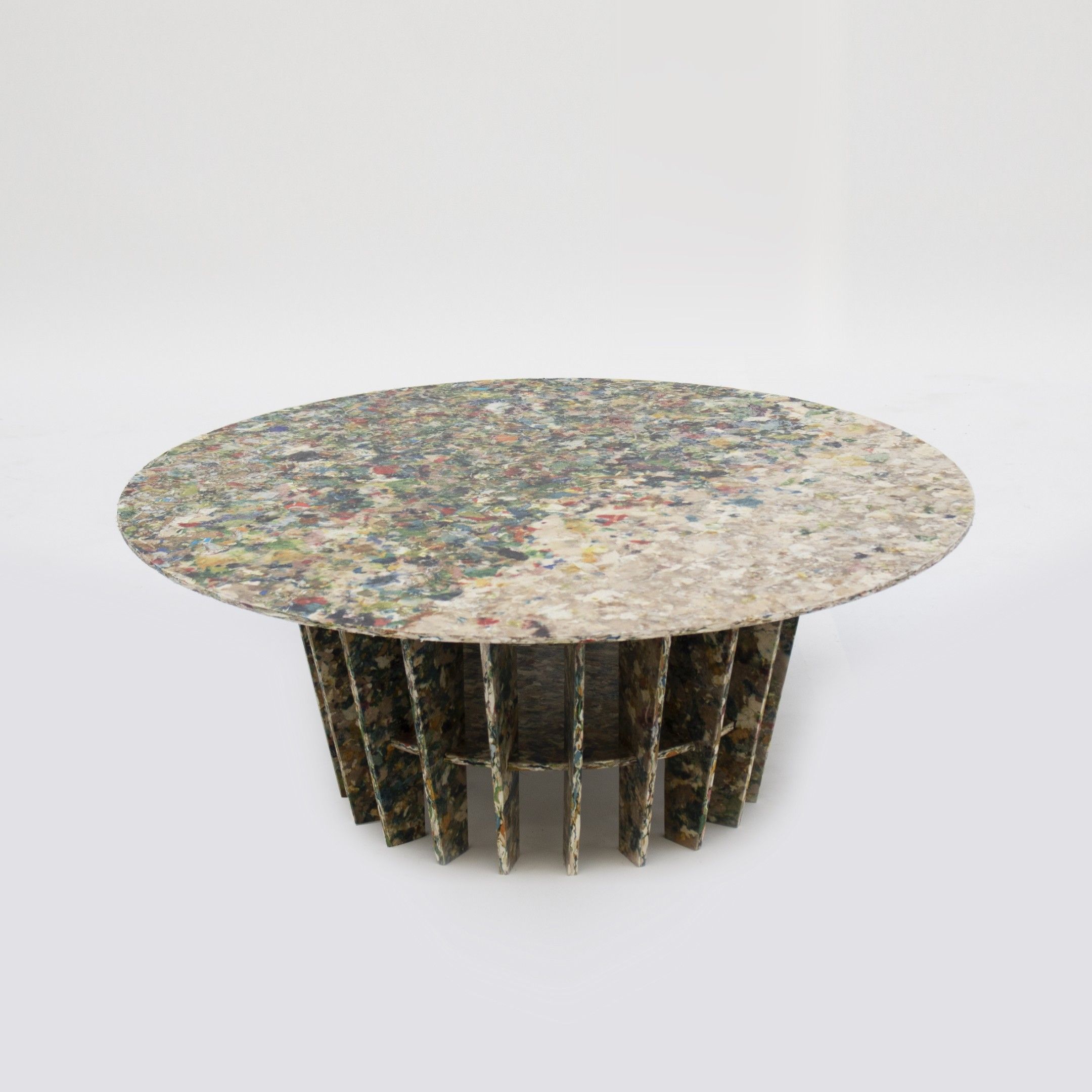 A 'Flocons d'avoine' coffee table, from 'Gourmandises' collection, 2024, structure made of Dropcake® recycled paper panels.
