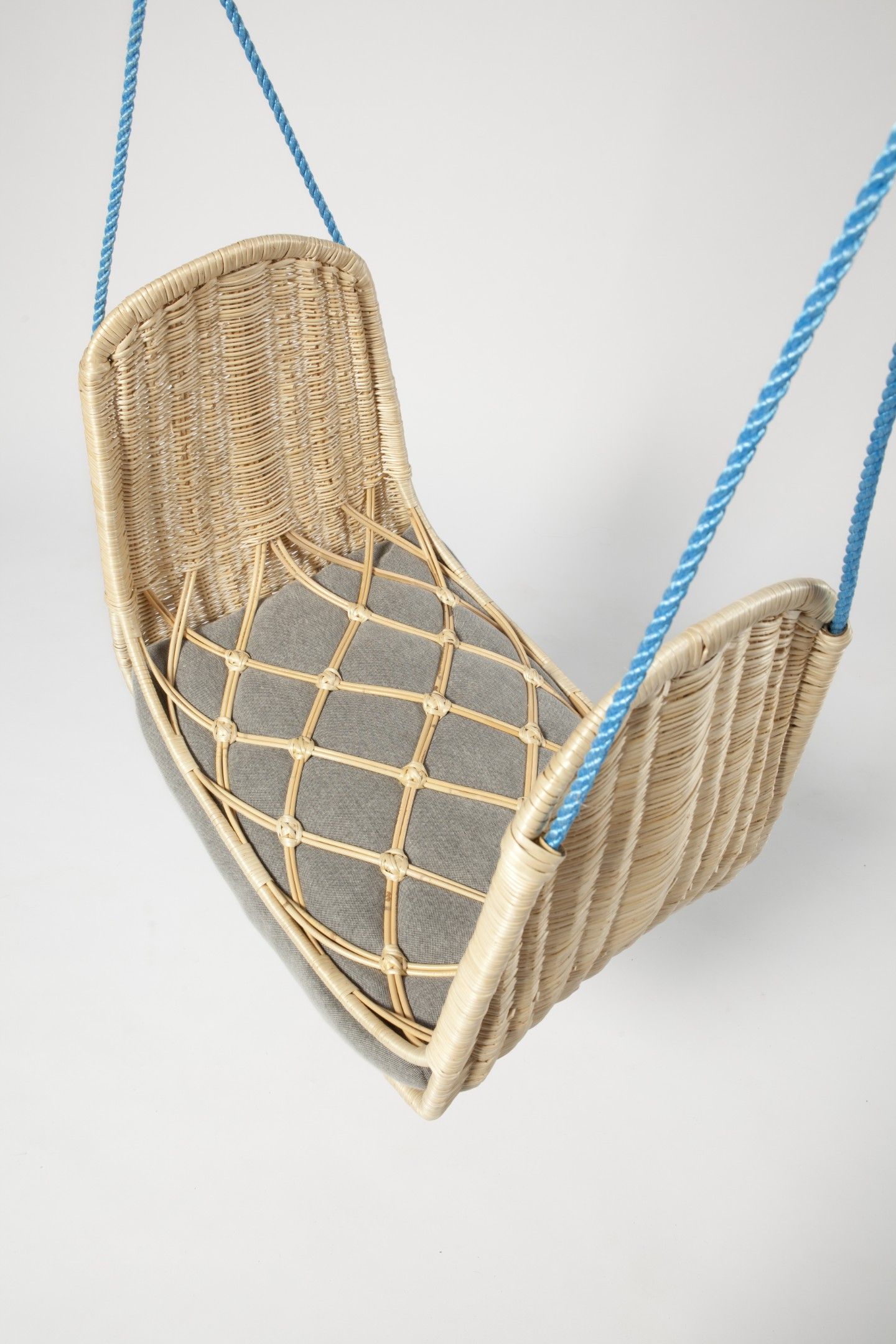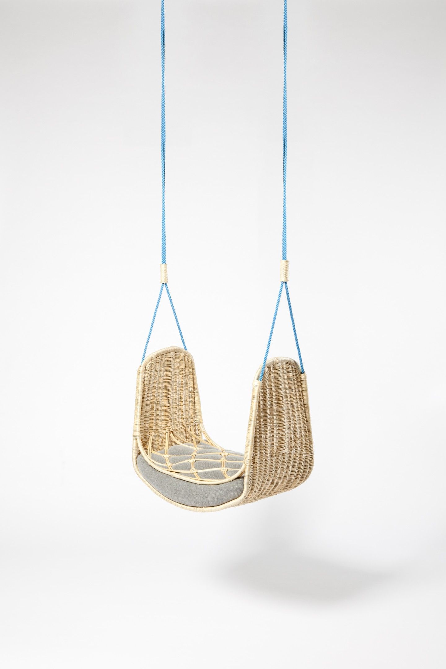 NOTE 'Superswing' is a small indoor swing, a suspended seat that generates dreams and movement. It reverses the process of comfort and traps a cushion within its structure, allowing the weaving of the wicker stems to create the pattern of the fabric on the seat.