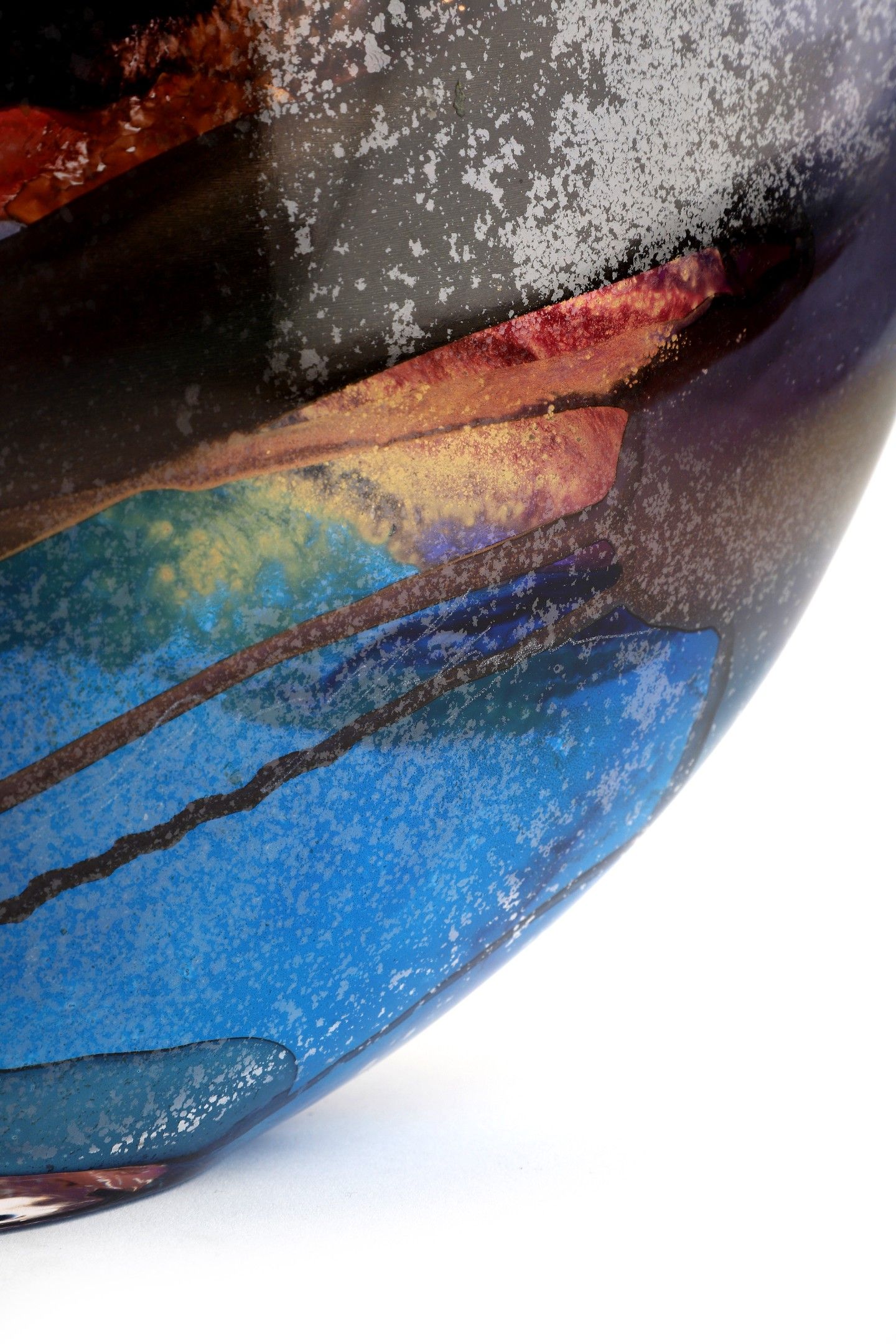 In polychrome painted glass, the inside powdered with gold.