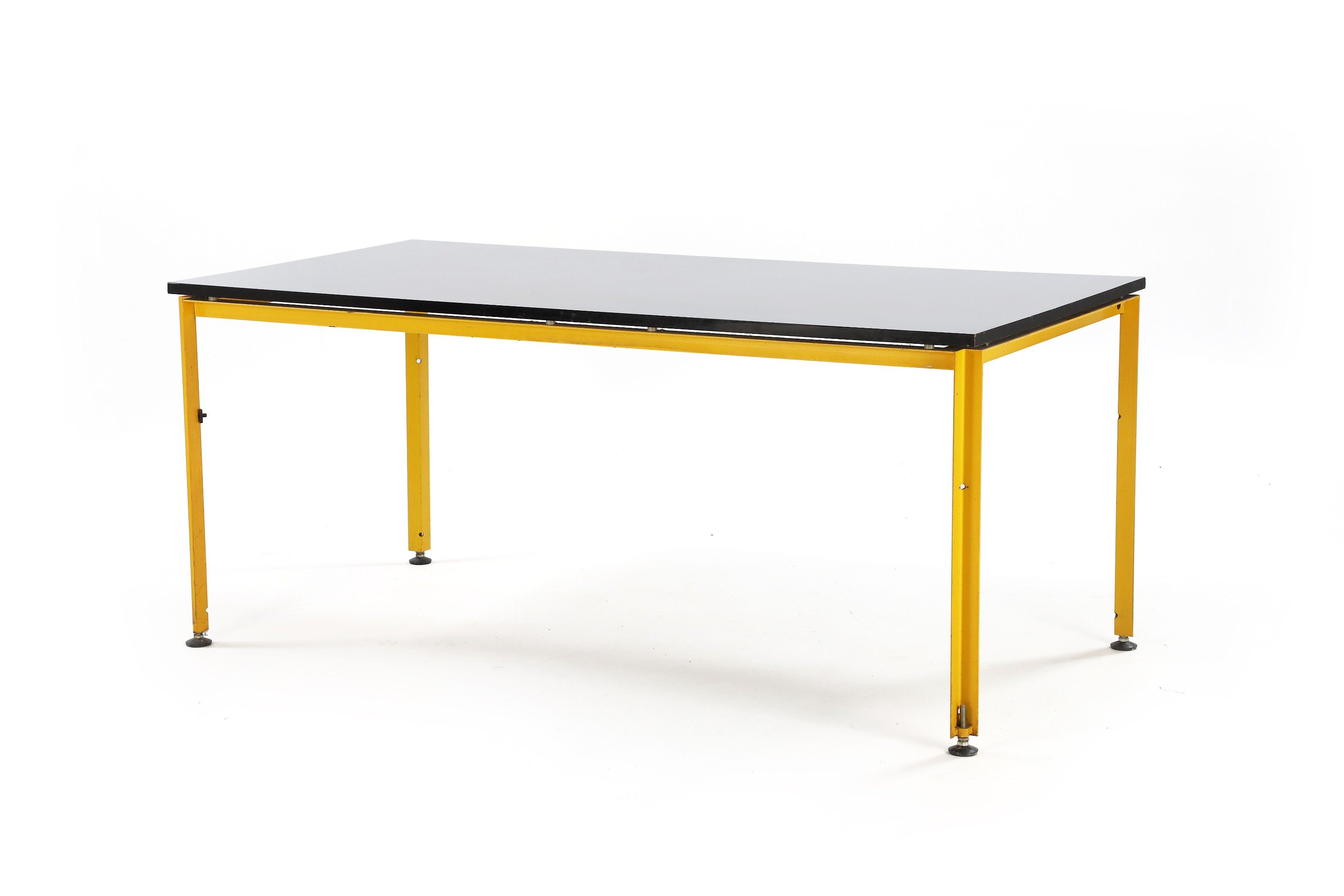 Legs in yellow lacquered steel, rectangular top in white melamine.