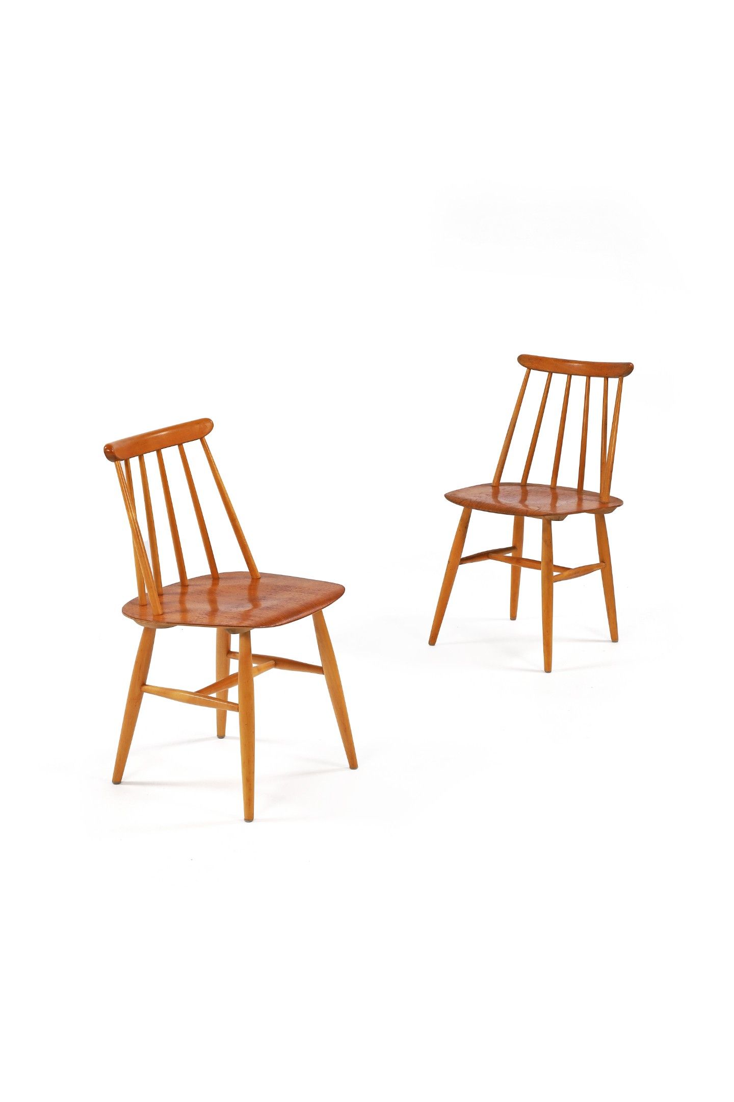 A pair of chairs, model 'Fanett' c. 1955, teak structure.