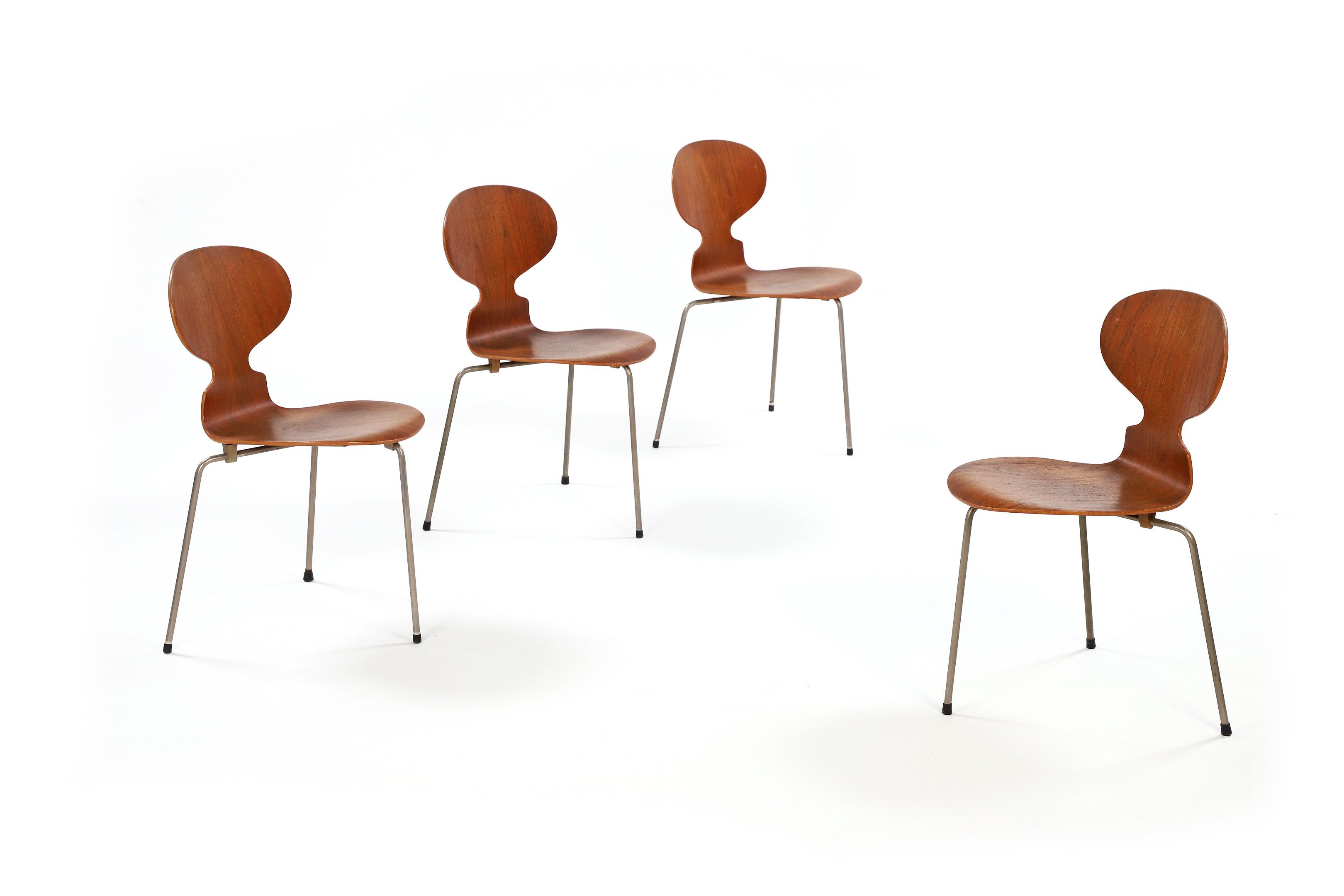 Suite of four chairs, model '3107' known as 'Ant' created in 1955.