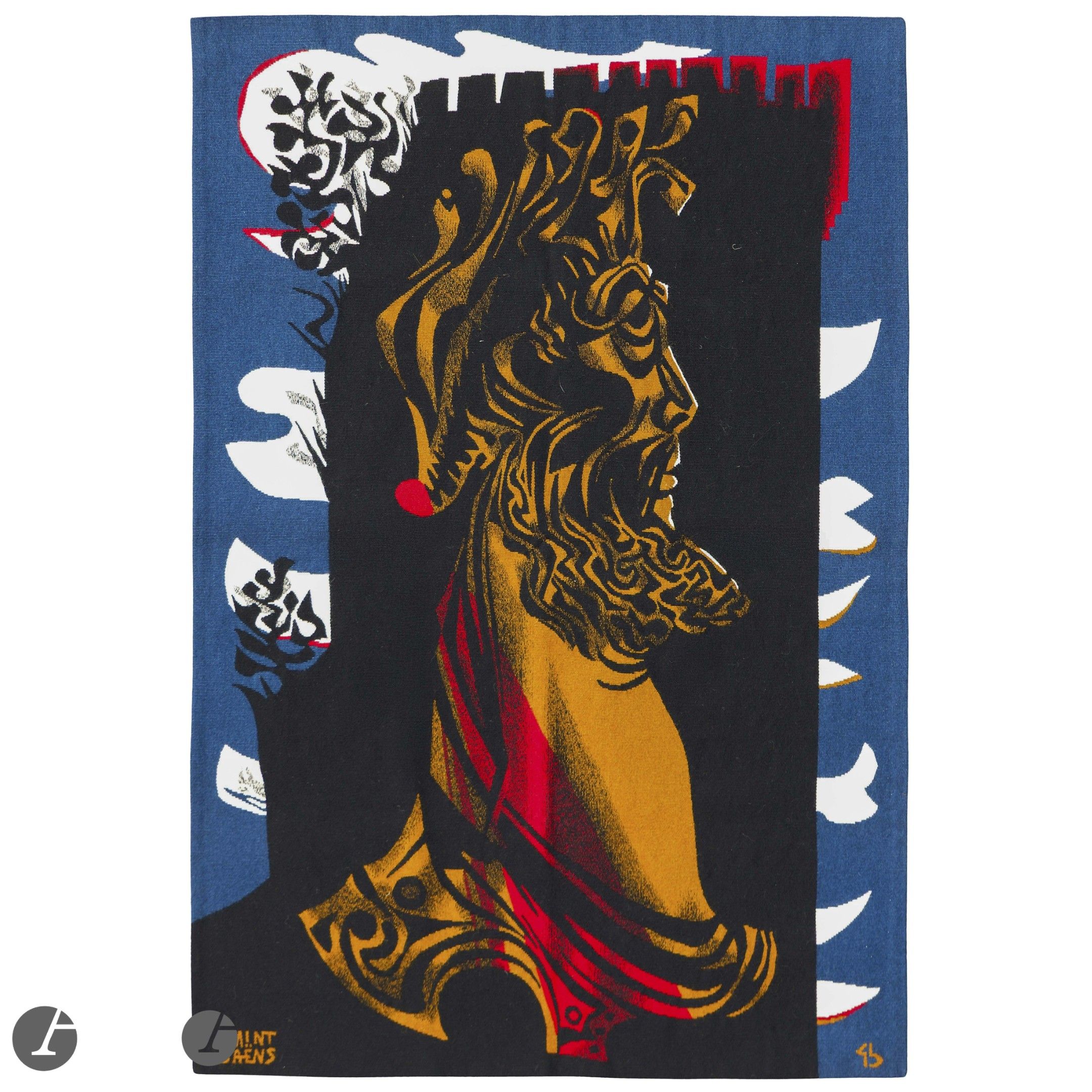 Signed SAINT SAËNS in the weft lower left and bears the weaver's monogram in the weft lower right, numbered 3/6 in the weft on the back, bears on the back the bolduc signed SAINT SAËNS with the following printed and handwritten remarks: Carton original de Marc SAINT SAËNS - Tapestry woven in the workshop of Gisèle GAUDIN-BRIVET in Aubusson - Dimensions H. 145 l. 100 - Exemplaire N° 3/6 - Matricule N° 573.